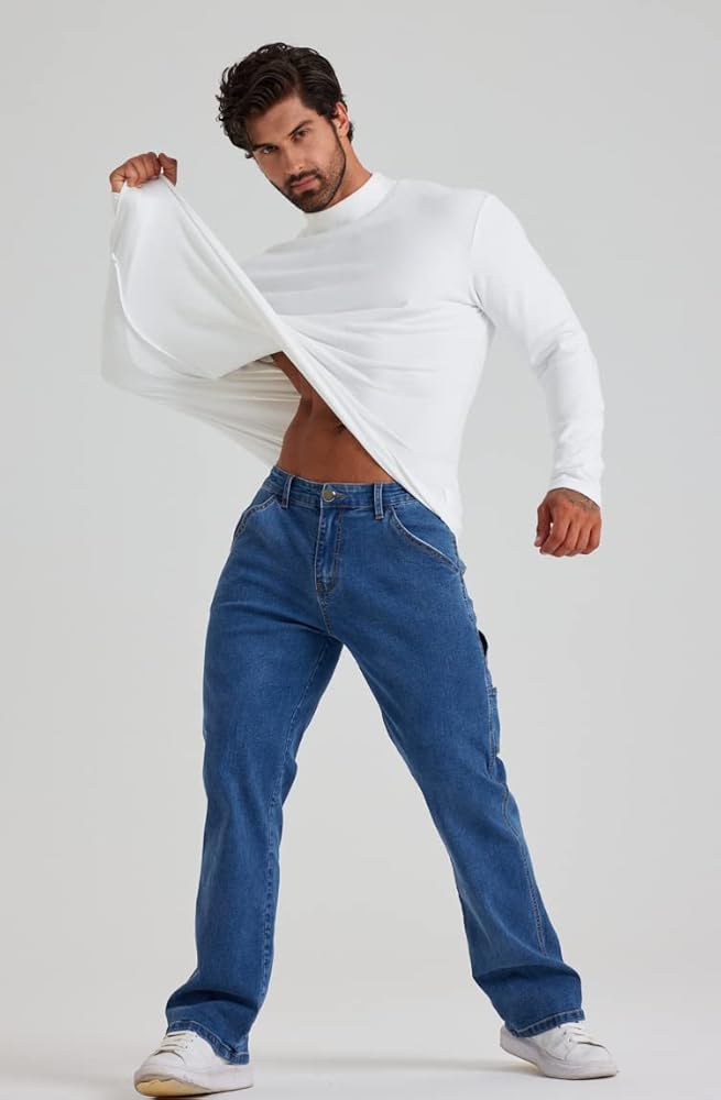مقاس مريح: لأيام العمل الطويلة، تريد جينز عمل يبقيك مرتاحًا، جينز مريح ومريح يحسن ملاءمة المقاعد والفخذين والركبتين. هذا الزوج من الجينز يمكن أن يوفر حرية أكبر في الحركة.