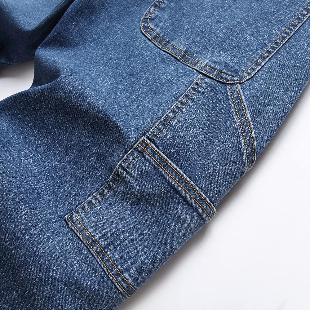 تخزين الأدوات: جيوب متعددة للأدوات والأدوات، وجيبين مائلين، وجيبين خلفيين، و4 جيوب للأدوات على الساق، تم تصميم جينز النجار الرجالي للحفاظ على سهولة الوصول إلى أدواتك أثناء العمل أو في ورشة العمل.
