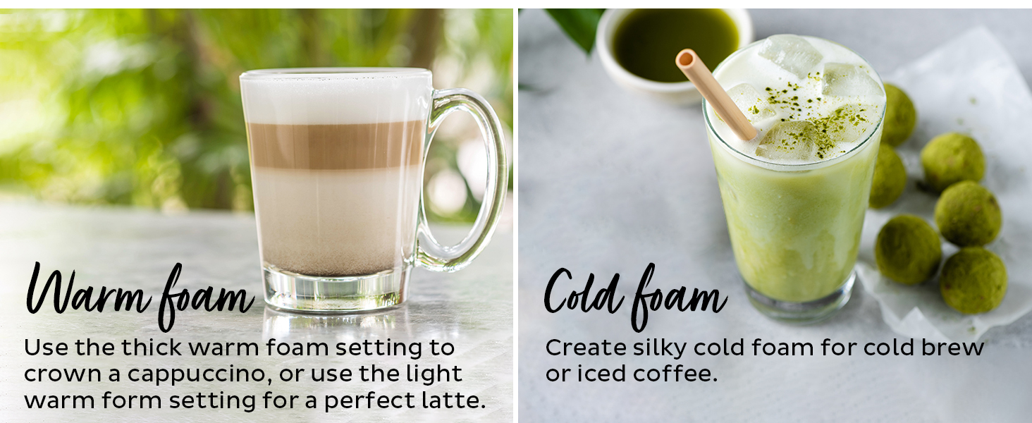 • كن باريستا الخاص بك: اصنع أنواعًا مختلفة من الرغوة من بدائل الألبان وغير الألبان للكابتشينو واللاتيه والقهوة المثلجة والماتشا والمزيد.