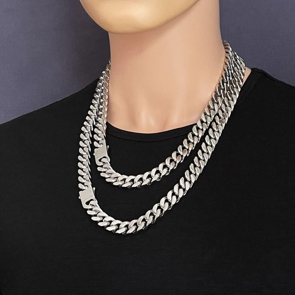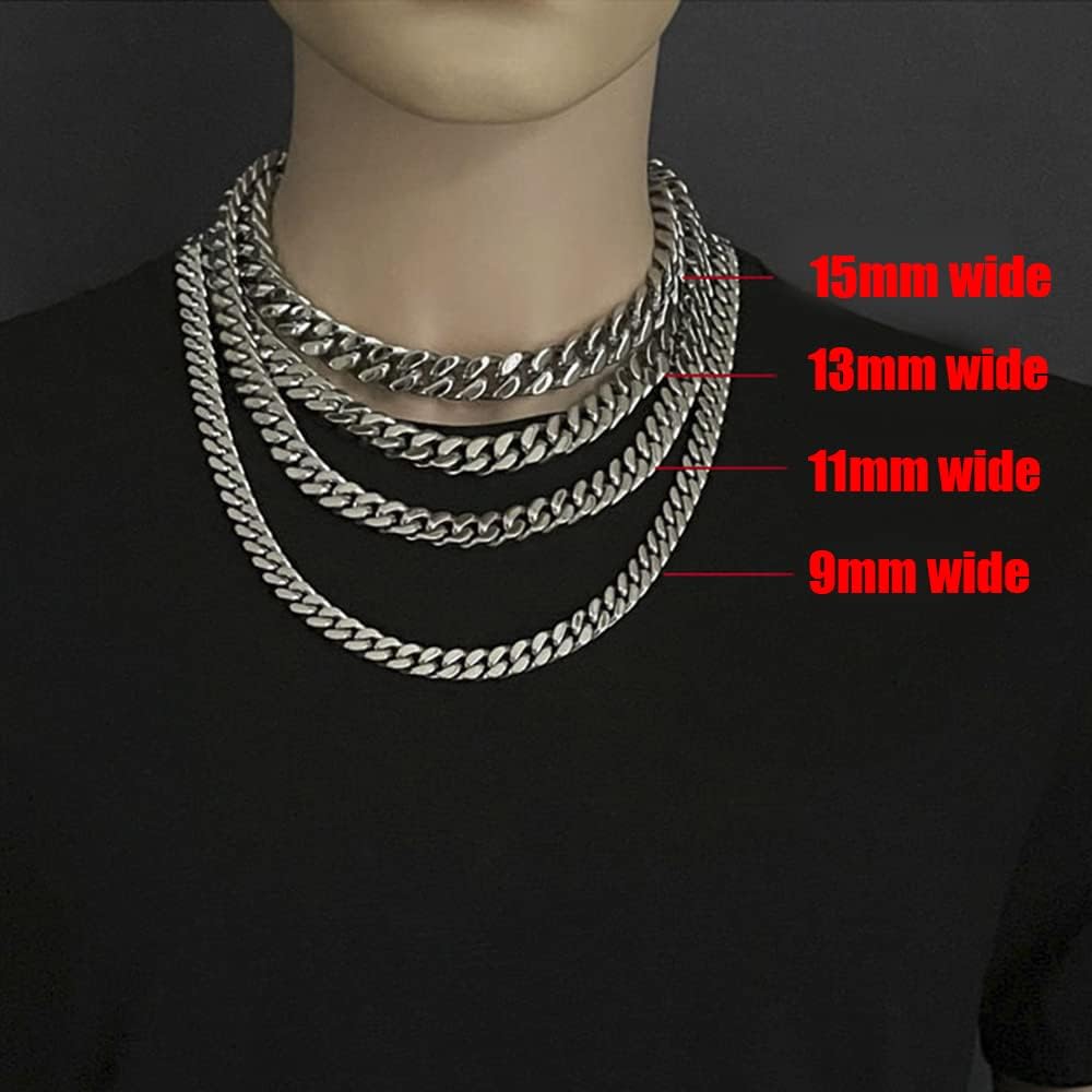 ✿ القلادة الكوبية: عرض 15 ملم وطول 46 سم ووزن حوالي 228 جرام. تصميم مشفر، يشعر بسلسلة ربط كوبية ثقيلة من الفولاذ المقاوم للصدأ للرجال بدون رقبة. للرجال كاديناس بارا هومبريس
