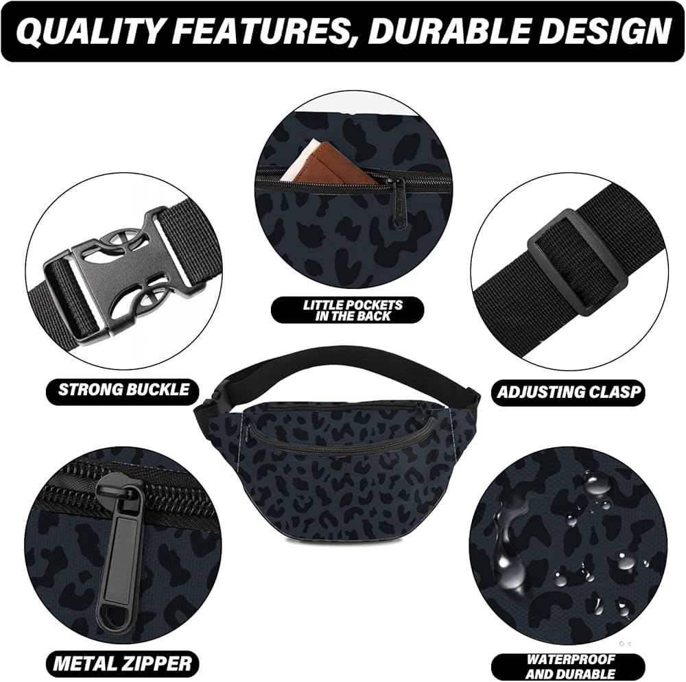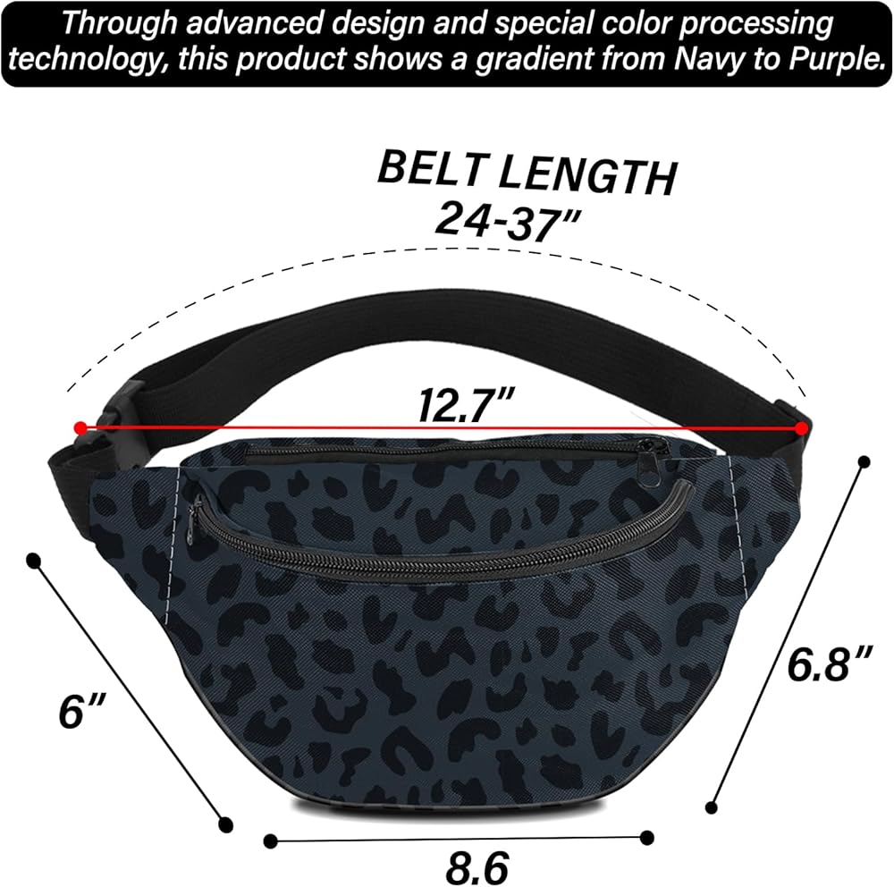 BHAHB Fanny Pack حزام حقيبة كروسبودي حقيبة بوم حقيبة الخصر مع 2 جيوب بسحاب للنساء حزمة الخصر للمشي لمسافات طويلة والجري والسفر وركوب الدراجات وعارضة الأزرق الأسود الأرجواني نمط الفهد الفهد