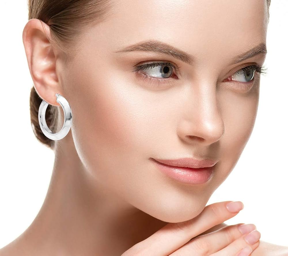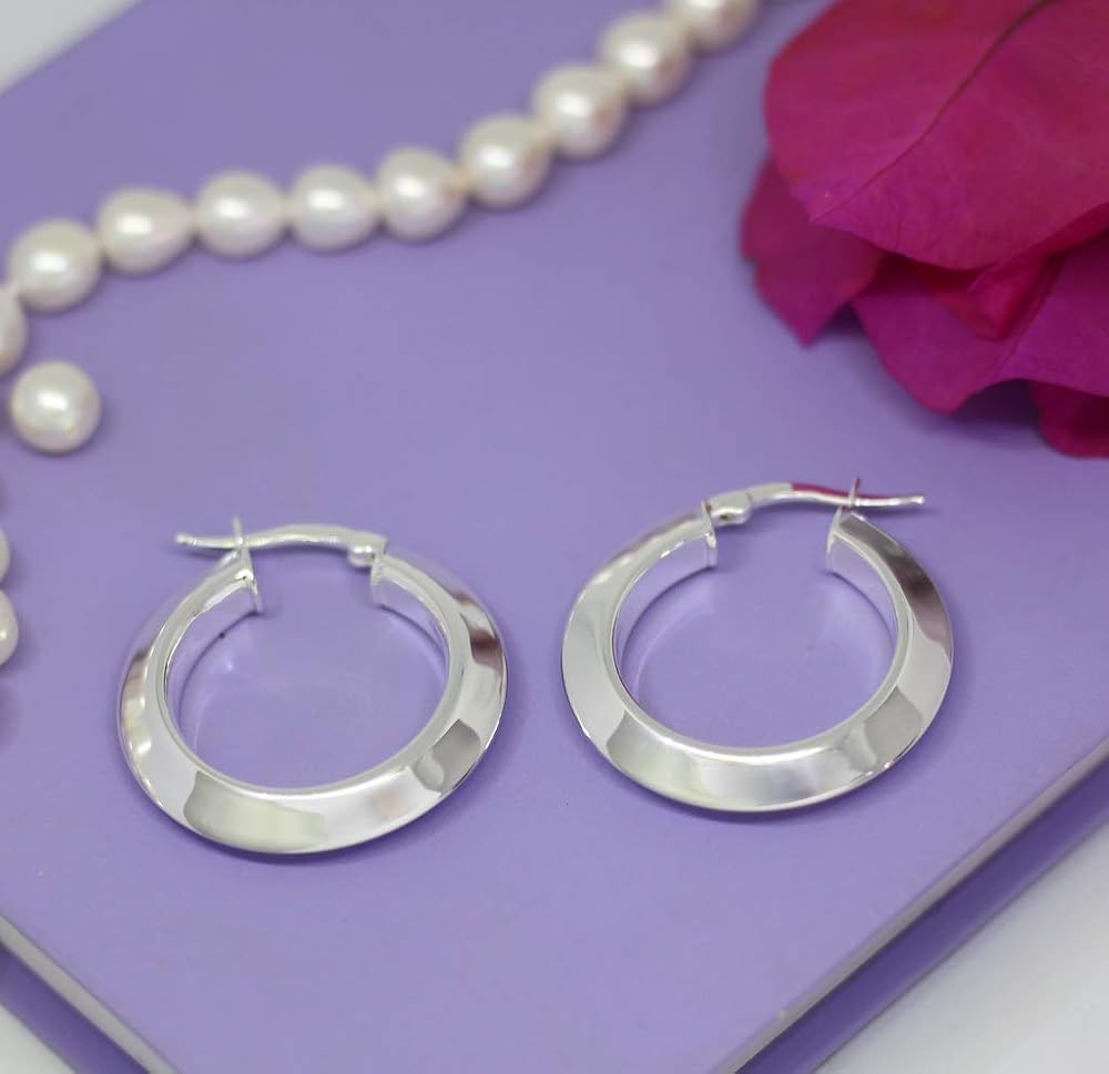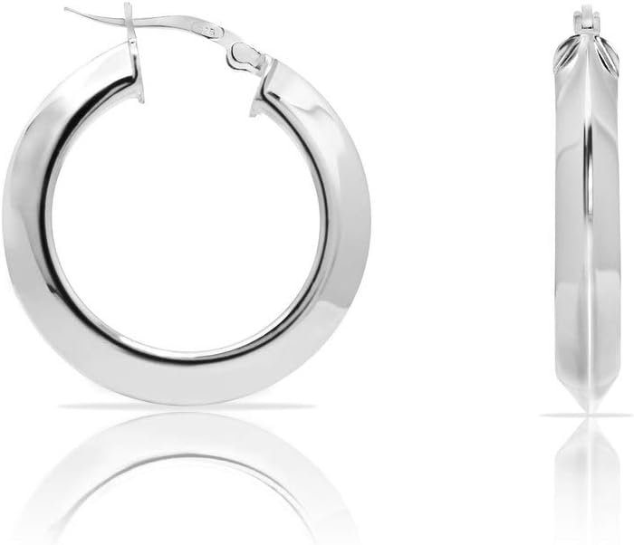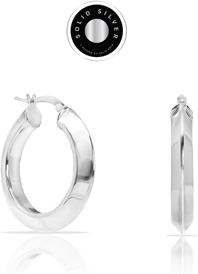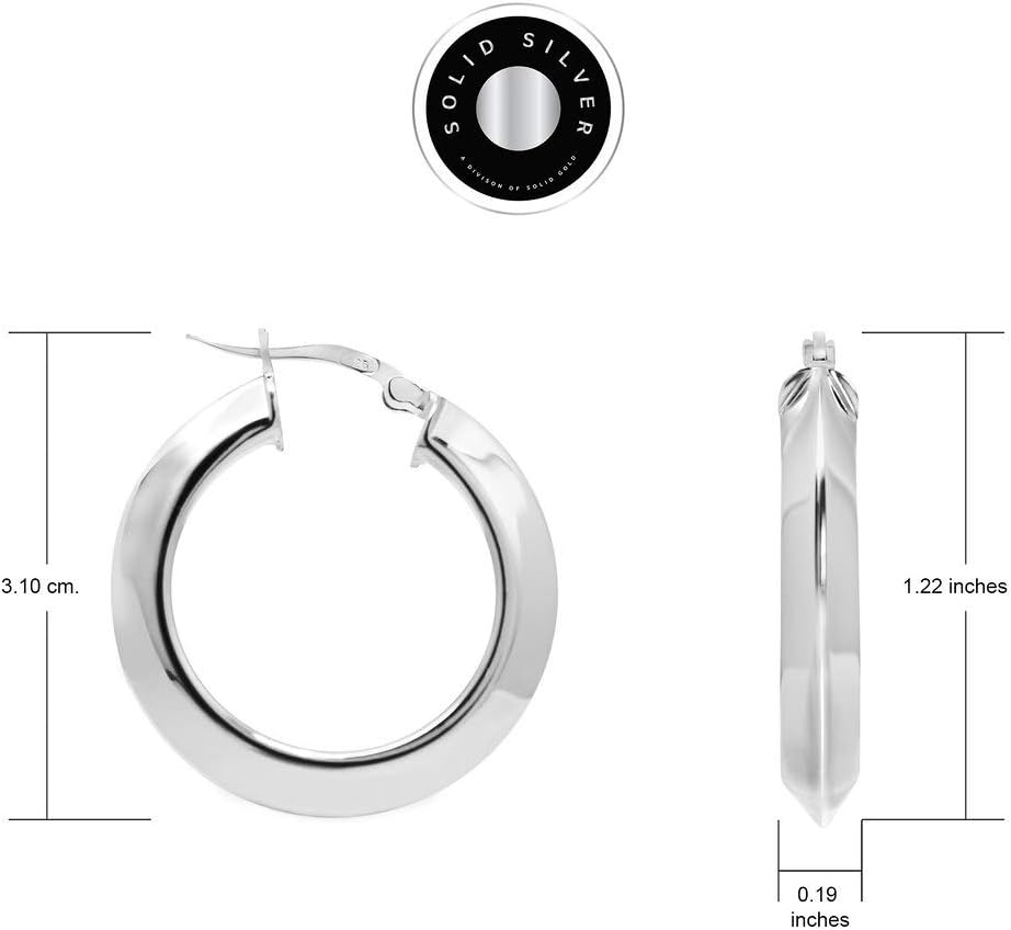 استمتع بالراحة واللون واللمعان من أقراط الفضة الاسترلينية الفاخرة 30 مم كليك مع تصميم أنبوب مثلث سميك 5 مم.