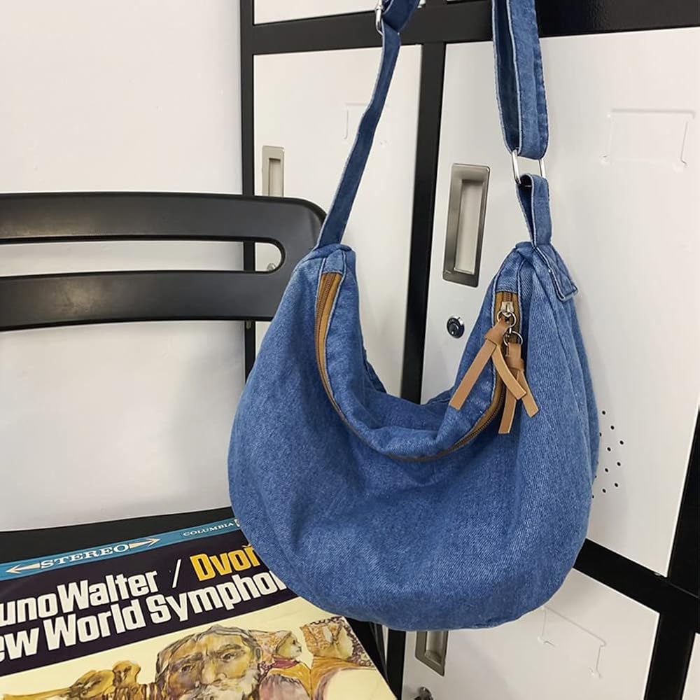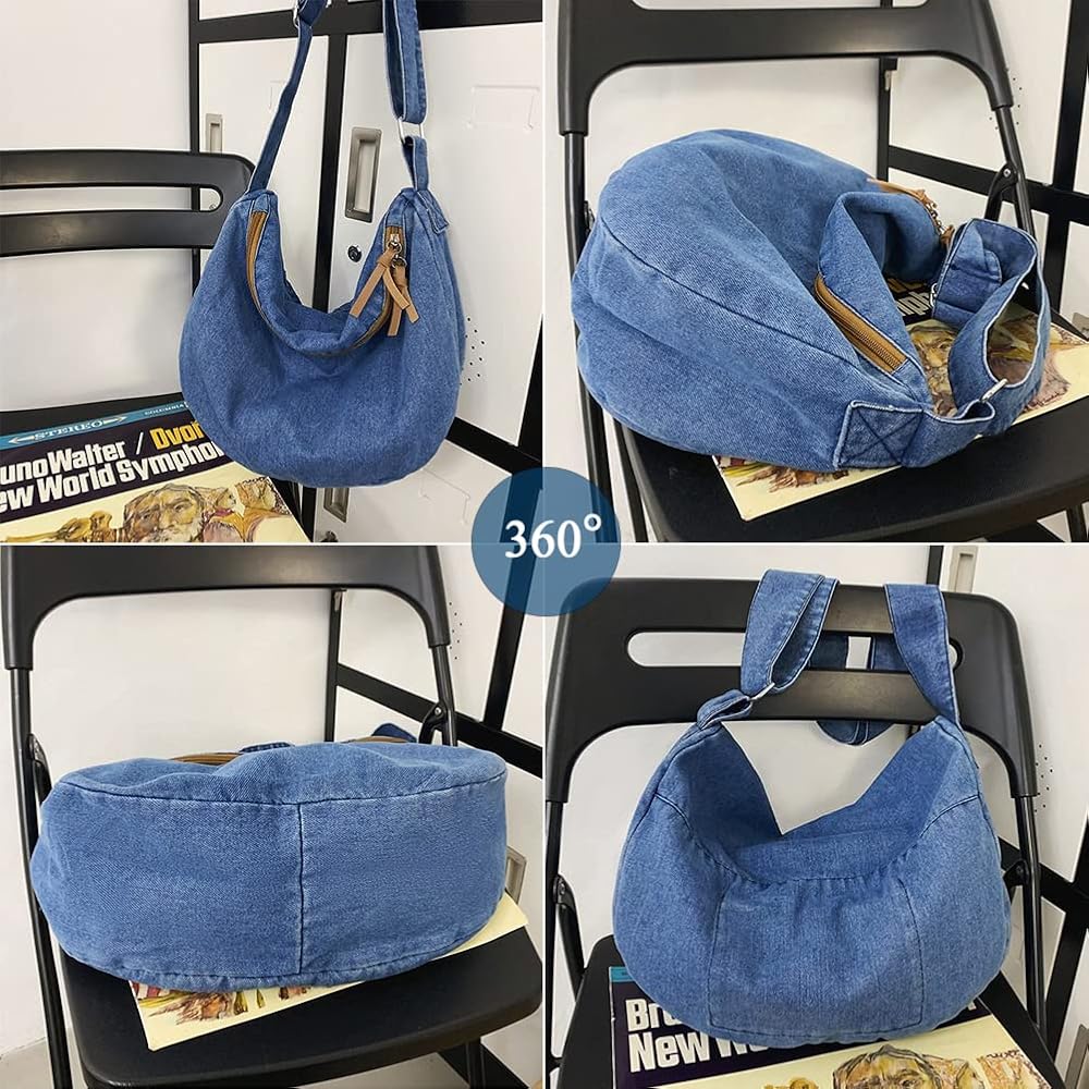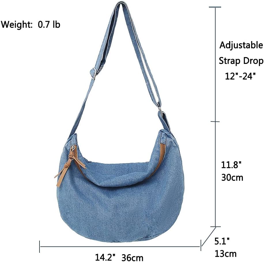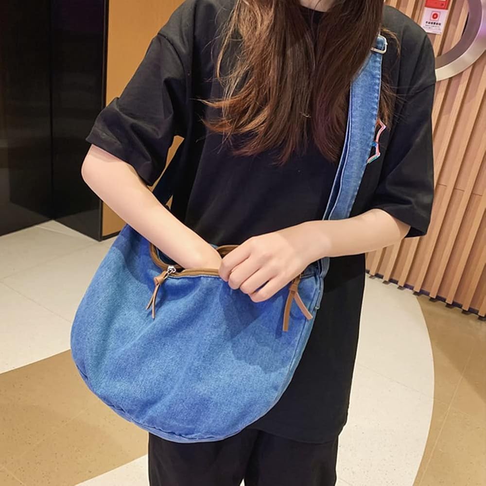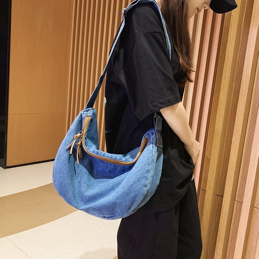 GOQUFOY محفظة الدنيم للنساء حقيبة كروس الجسم الأزرق جان المحافظ قماش حمل الهلال حقيبة كتف Crossbody المتشرد حقائب اليد