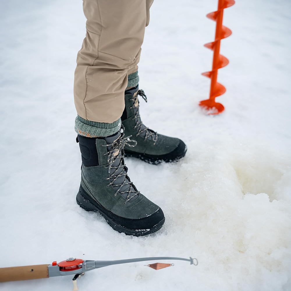 Icebugs Warmest shoe: Torne2 provides stability and comfort with a thick recycled merino wool insole coupled with waterproof Gore-Tex Membrane outsole will keep you dry and from slipping.