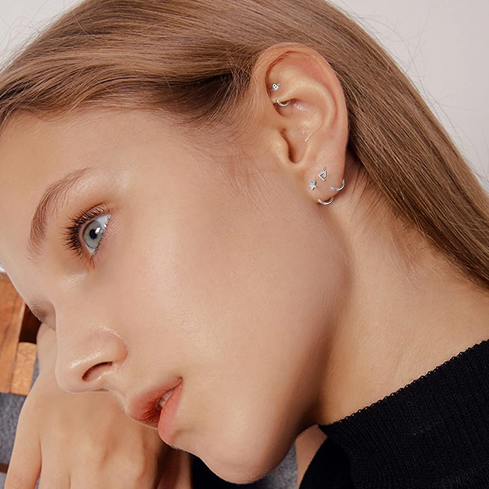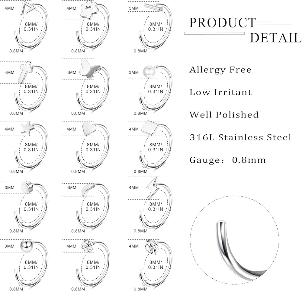 [حجم أقراط الغضروف] - القطر الخارجي الصغير حوالي 0.31 بوصة (8 مم)، المقياس: 20 جم (0.8 مم). هذه الأقراط الغضروفية مصنوعة من الفولاذ الجراحي عالي الجودة 316L، وخالي من النيكل والرصاص، ومنخفض التهيج، وغير ضار لجسمك. سطح مصقول وناعم للغاية، لن يضر البشرة، وهو مناسب جدًا للبشرة الحساسة عند ارتدائه واستخدامه بشكل متكرر.