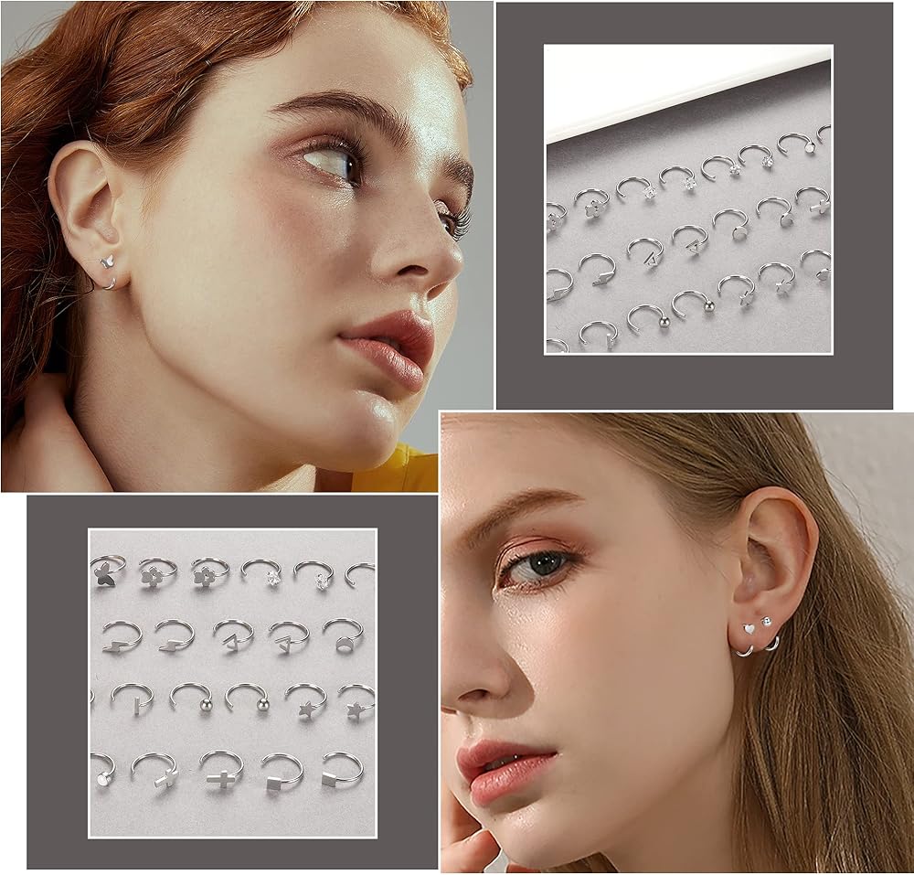 [مجوهرات متعددة الاستخدامات] - 15 زوجًا من المجوهرات البسيطة، يمكن استخدامها كحلقة للأنف، وأقراط حلقية ضخمة، ويمكن استخدامها أيضًا كأقراط نصف دائرية، وأقراط حلزونية، وخواتم شفاه، وأقراط تراجوس، وما إلى ذلك. خيار قوي للأشخاص الذين لديهم العديد من ثقوب الأذن، ويشتهر أيضًا بأقراط الغضروف.