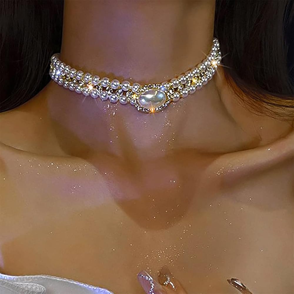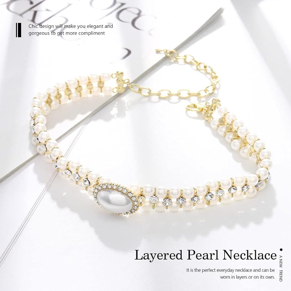 قلادة اللؤلؤ مصنوعة من سبائك عالية الجودة وأحجار الراين واللؤلؤ. يتم تطبيق تكنولوجيا مرصعة بالألماس وطلاء عالي الجودة لحماية البيئة لضمان بقاء أحجار الراين لامعة لفترة طويلة.