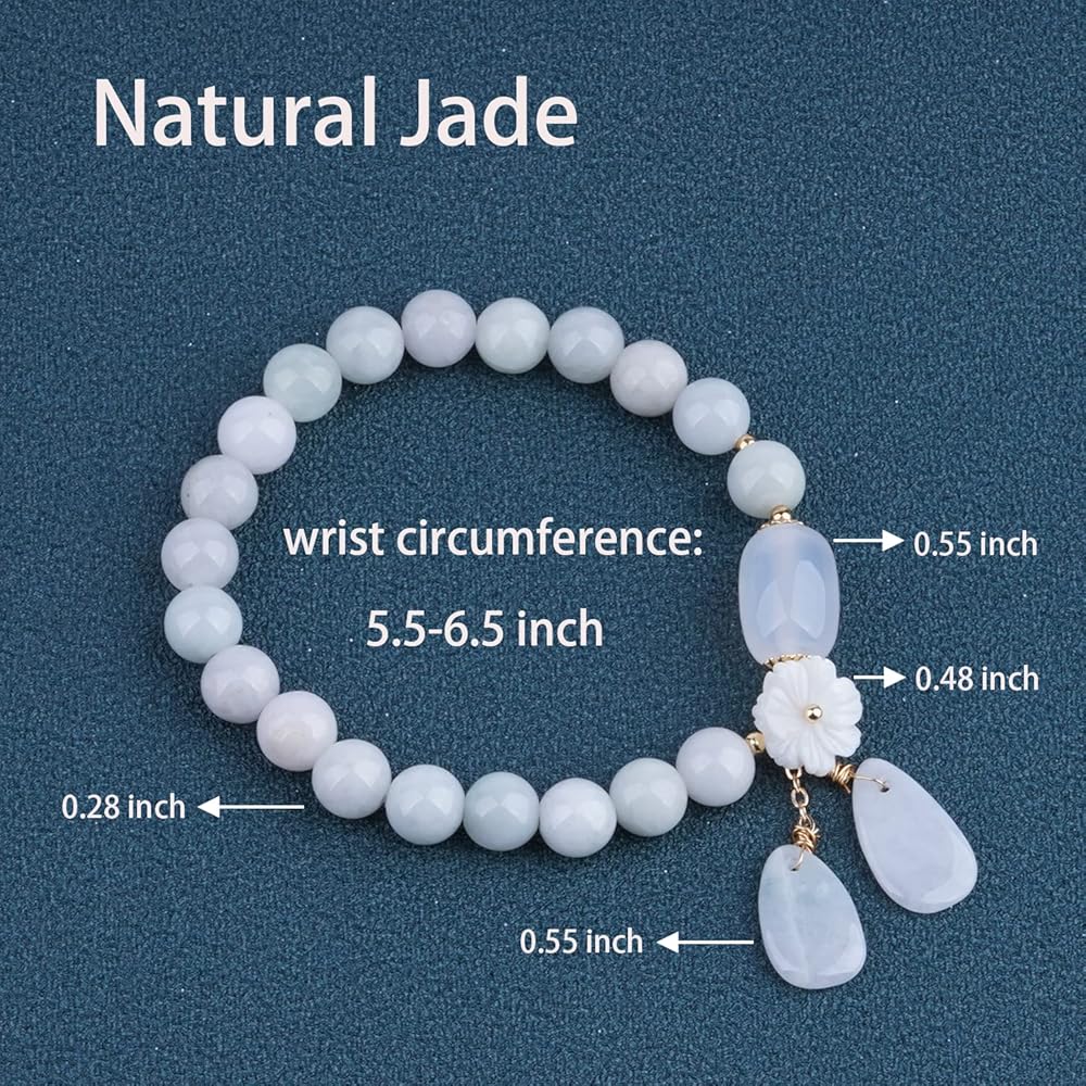 Jade Bracelet for Women Cute Jade Bead Elastic Crystal Bracelet Natural Quartz Beaded Stone Bracelets Spiritual Jewelry Birthday Christmas Gifts