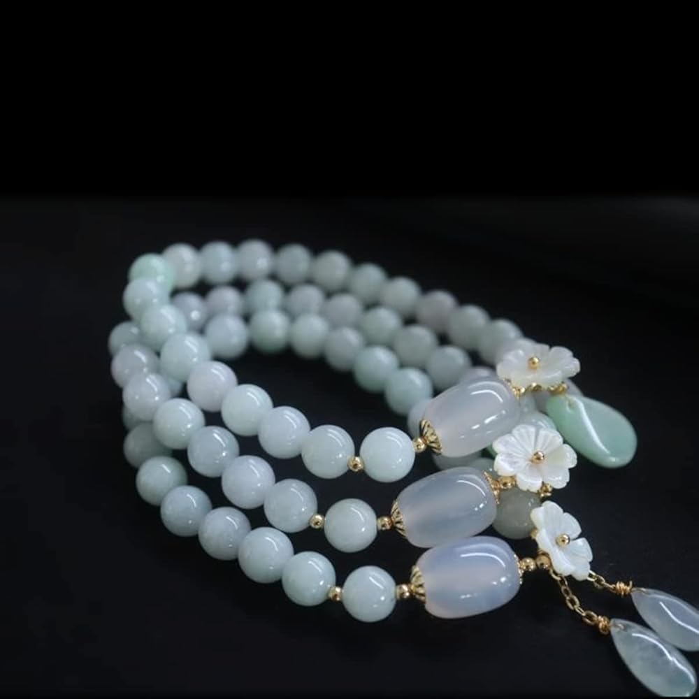 Natural jade bracelets are made of natural real jade stone beads. High-quality crystal materials are the soul of this shell flower jade bracelet.