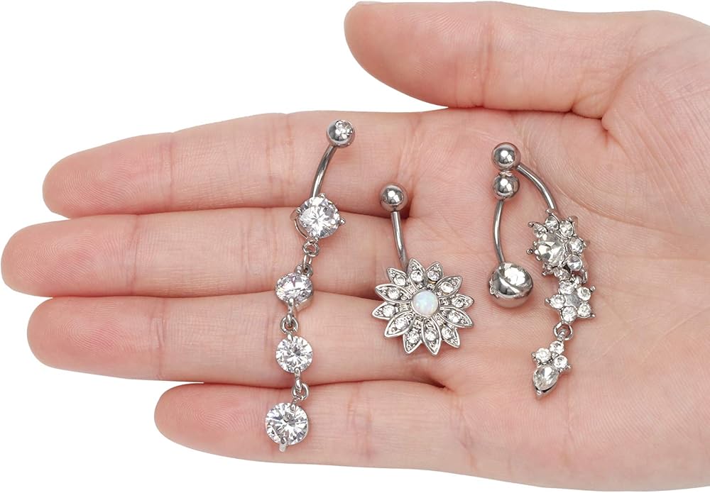 Wonderful Gift: this production including 3 style dangle belly button ring and 2 belly button ring, great gift for daughter, sister, friend, girlfriend etc, those people who like body piecing jewelry and make pleasure with belly button ring dangle on Christmas Day, Thanksgiving Day, New Year's Day, Valentine's Day, Anniversary, Birthday.