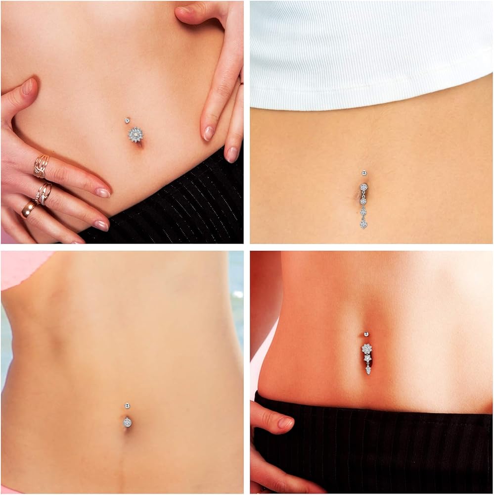 Package: 5 different style belly piercing jewelry, include 3 style dangle belly button ring, and 2 belly button ring, you have more choose when you hang out, unique belly button jewelry decoration