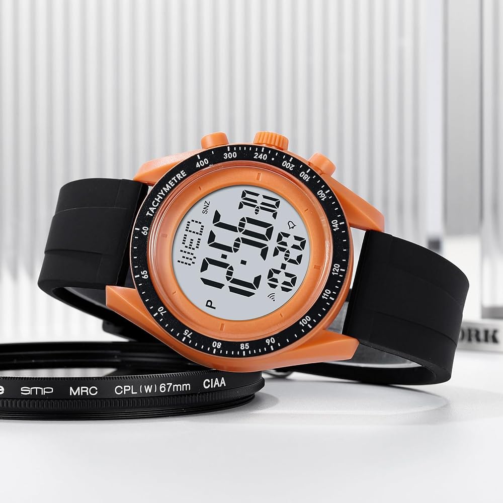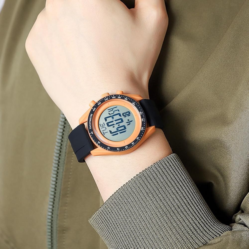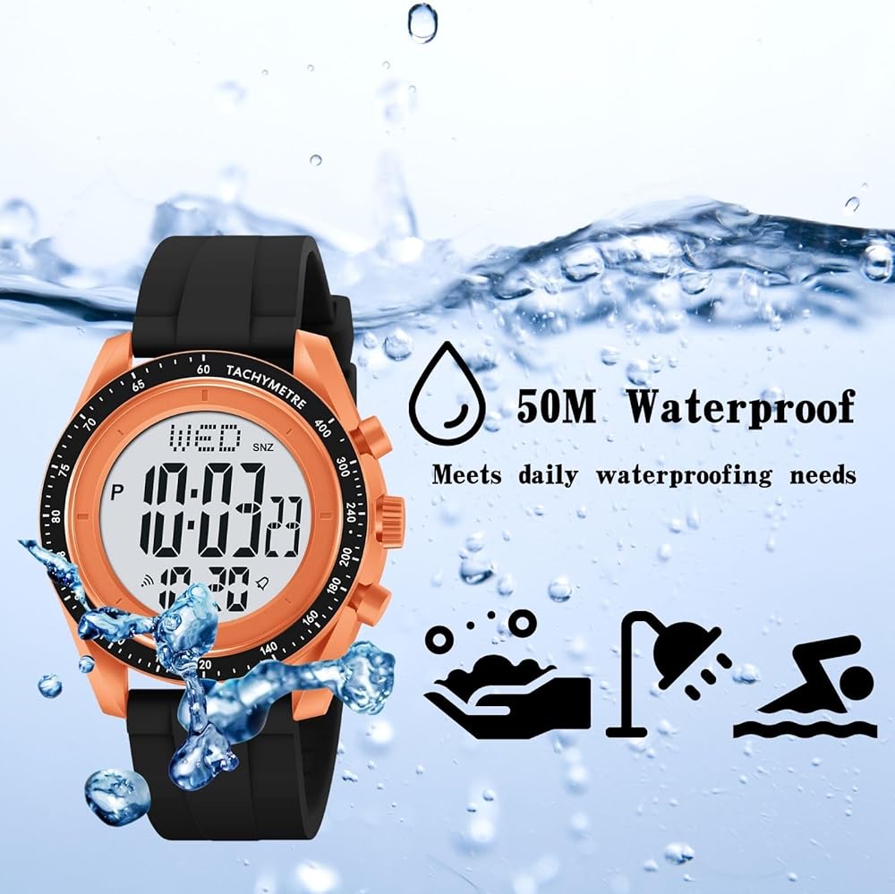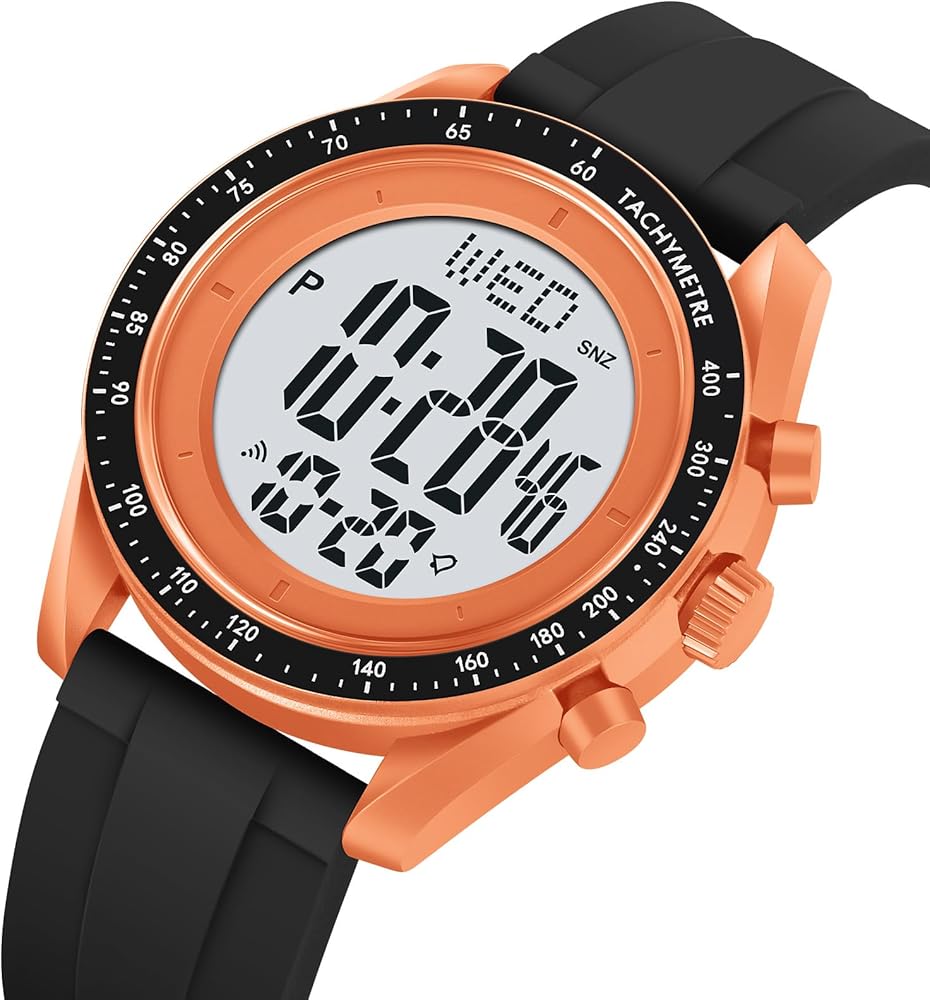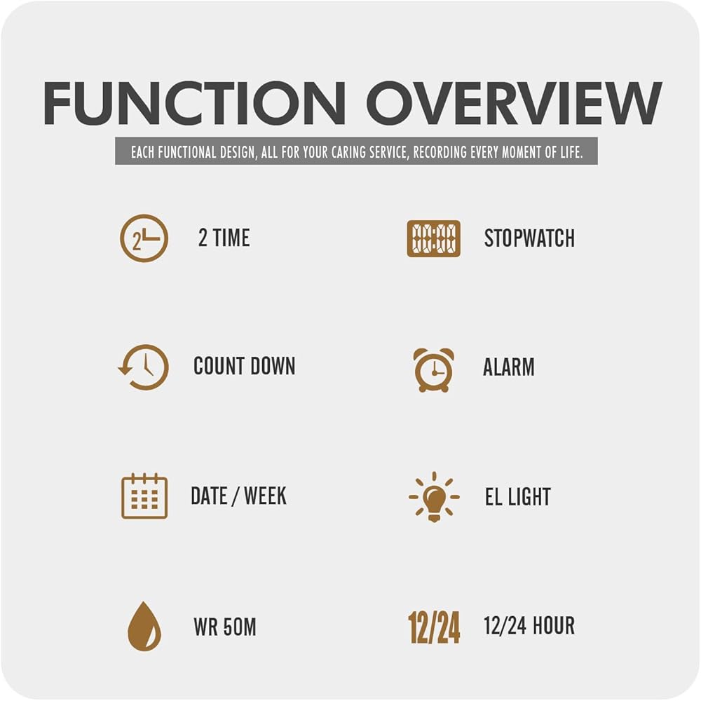 ساعة متعددة الوظائف: هذه الساعة متعددة الاستخدامات مجهزة بميزات مثالية لجميع أنواع الرياضة والاستخدام اليومي. تحتوي على تاريخ تلقائي، ومنبه، ومقاومة للماء، وشاشة LED، ومقاومة للصدمات، وساعة إيقاف، ووظائف الإضاءة الخلفية.