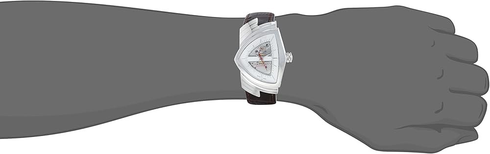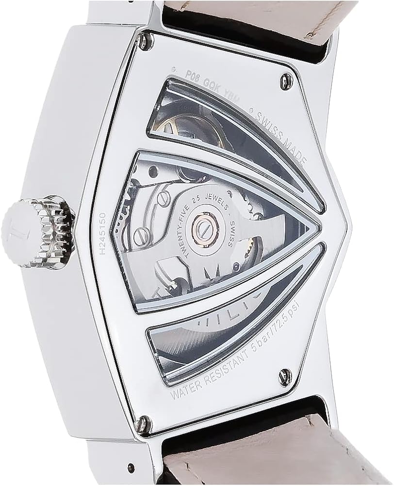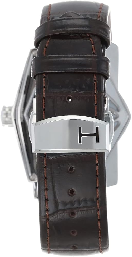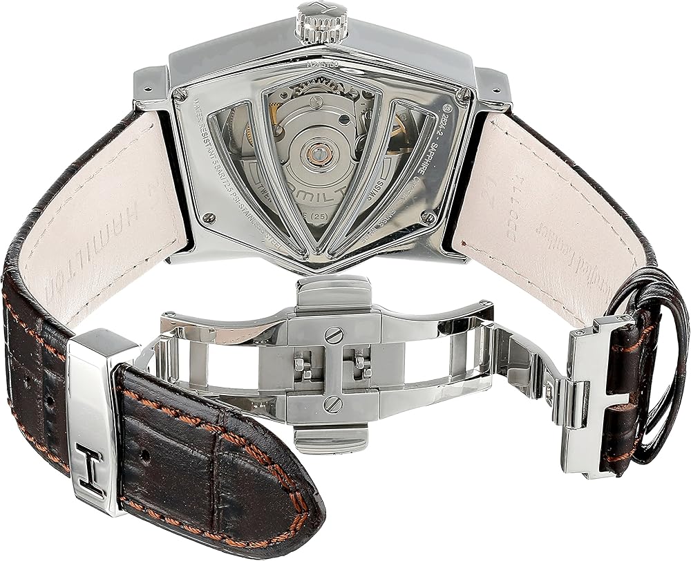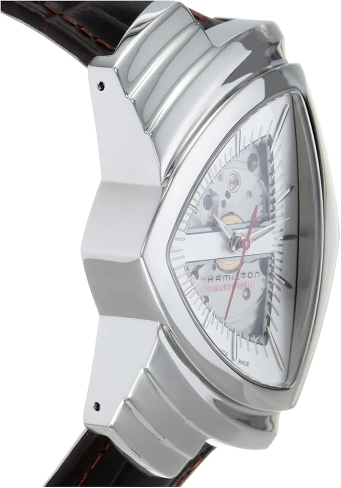هاملتون ساعة فينتورا سويسرية اوتوماتيكية بهيكل 34.7 ملم × 53.5 ملم ومينا فضي وسوار جلدي بني (الموديل: H24515551)، فضي، كلاسيك