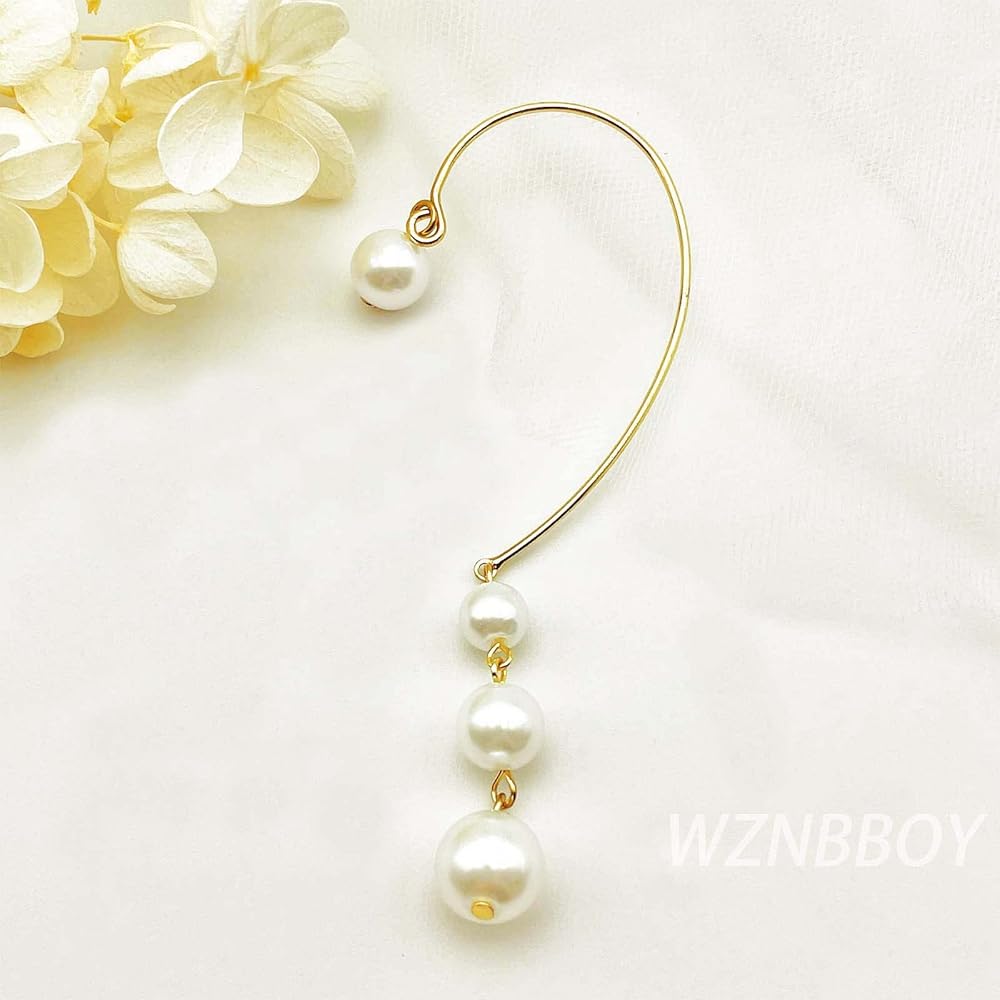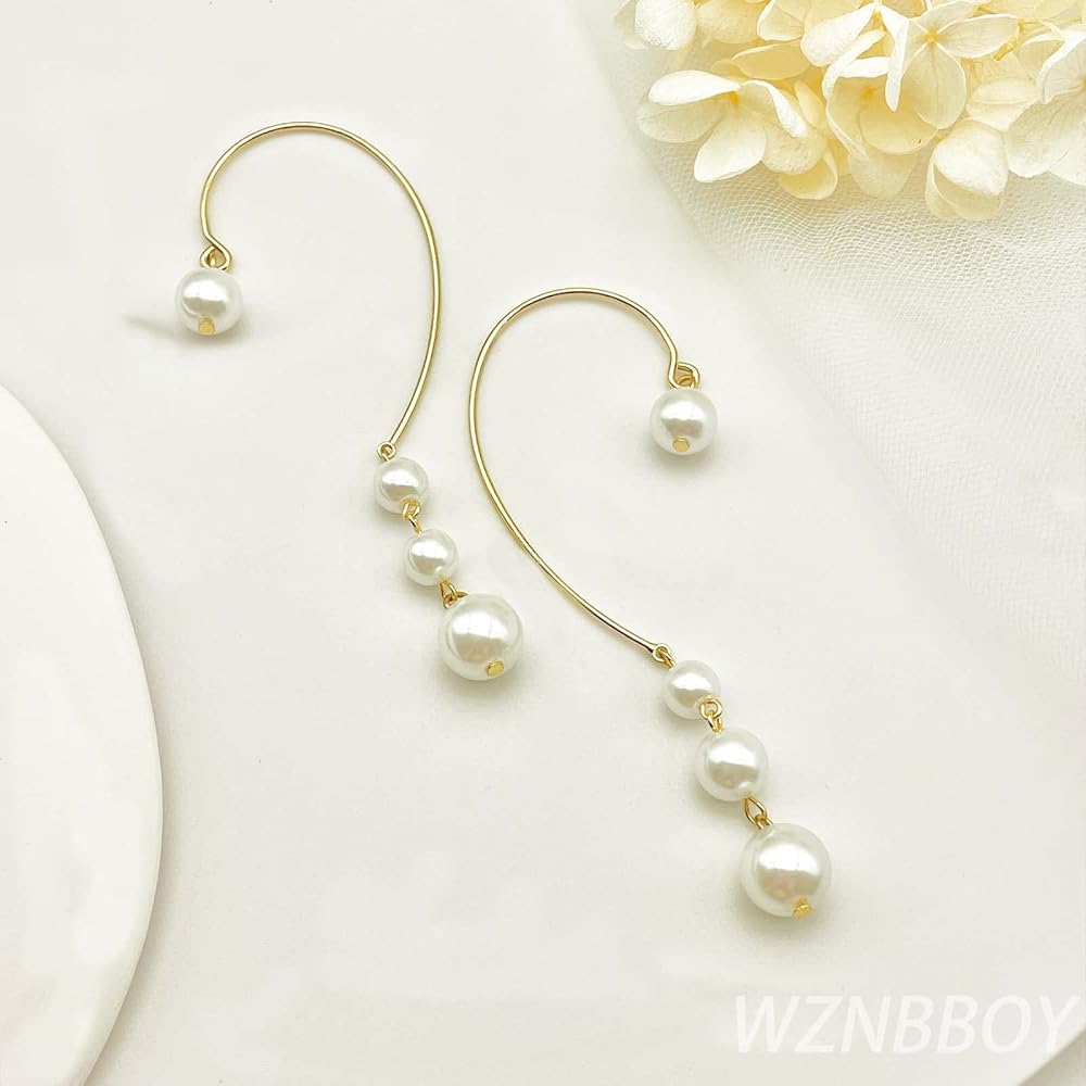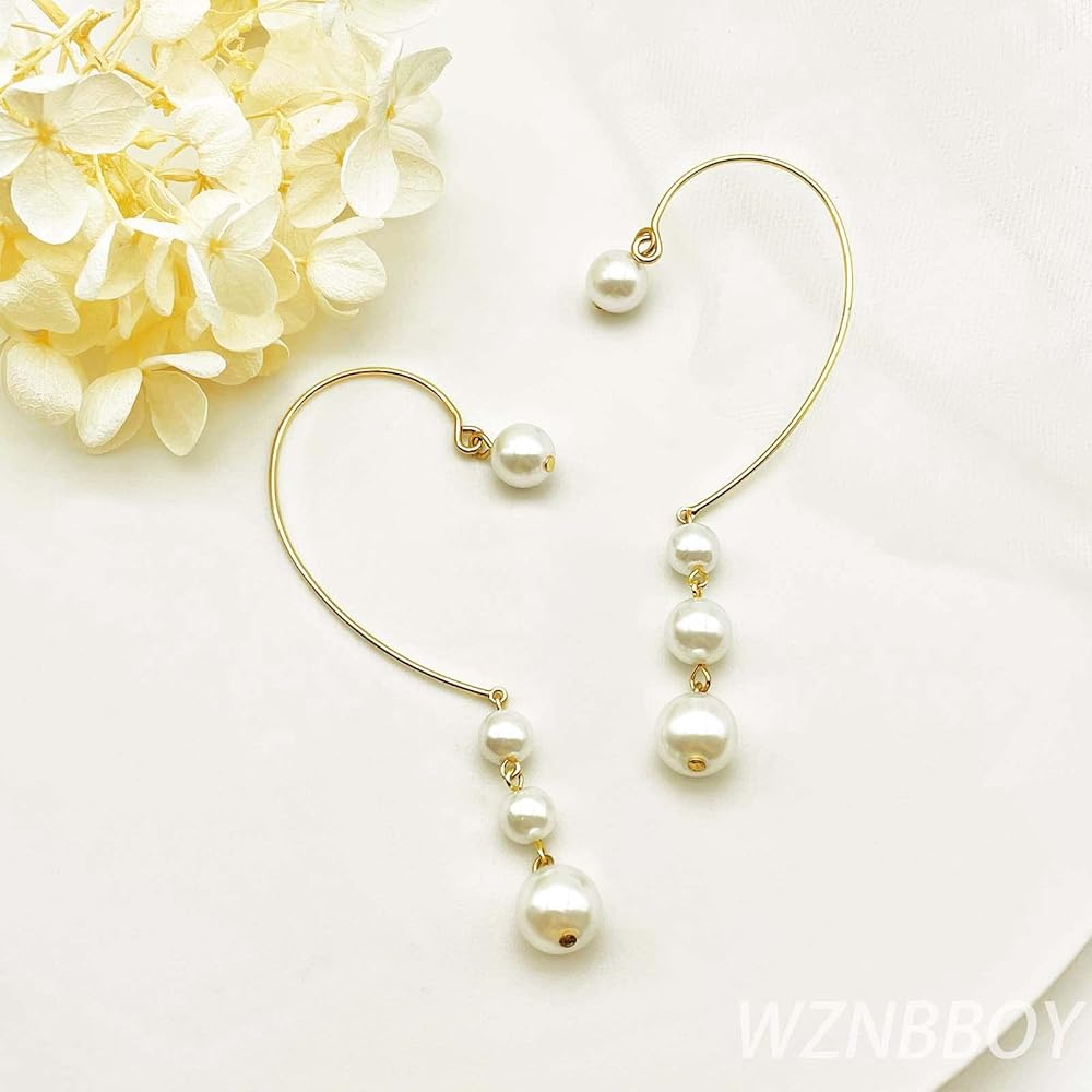WZNBBOY بوهو الذهب طويل الشرابة اللؤلؤ الأذن الكفة سلسلة الأقراط لذيذ اللؤلؤ غير مثقوب الغضروف أقراط خمر اللؤلؤ انخفاض الأقراط مجوهرات الزفاف للنساء والفتيات