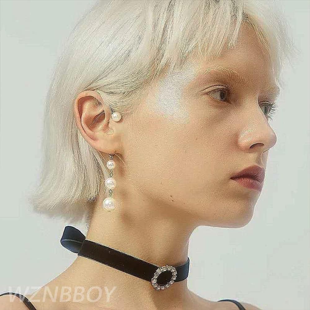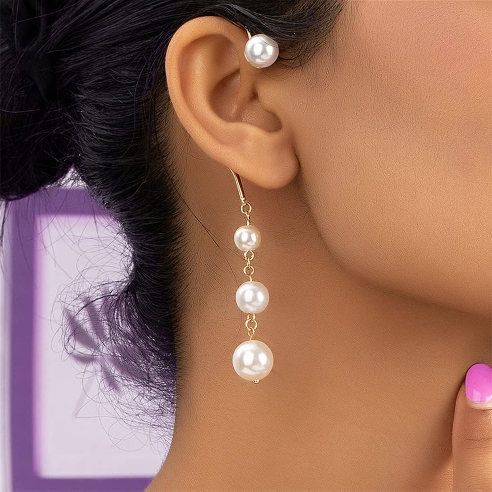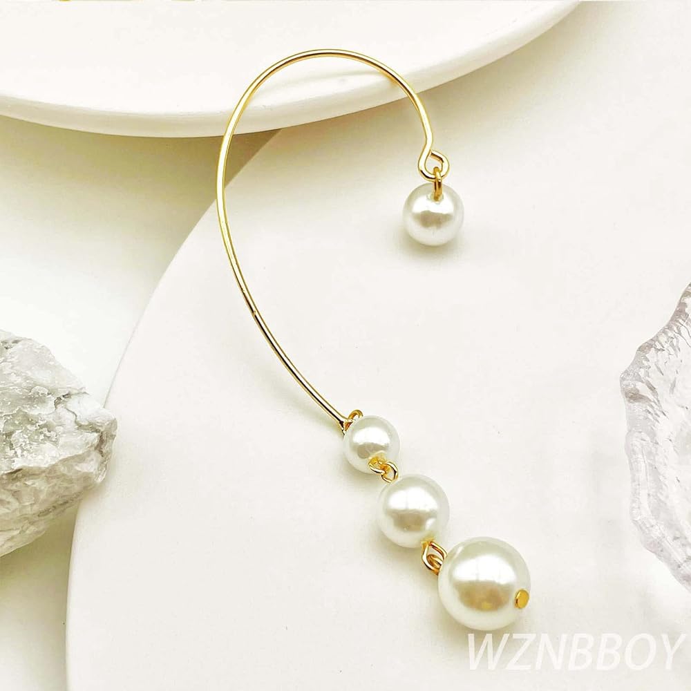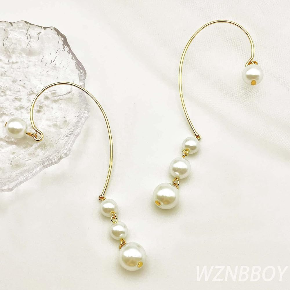 WZNBBOY بوهو الذهب طويل الشرابة اللؤلؤ الأذن الكفة سلسلة الأقراط لذيذ اللؤلؤ غير مثقوب الغضروف أقراط خمر اللؤلؤ انخفاض الأقراط مجوهرات الزفاف للنساء والفتيات