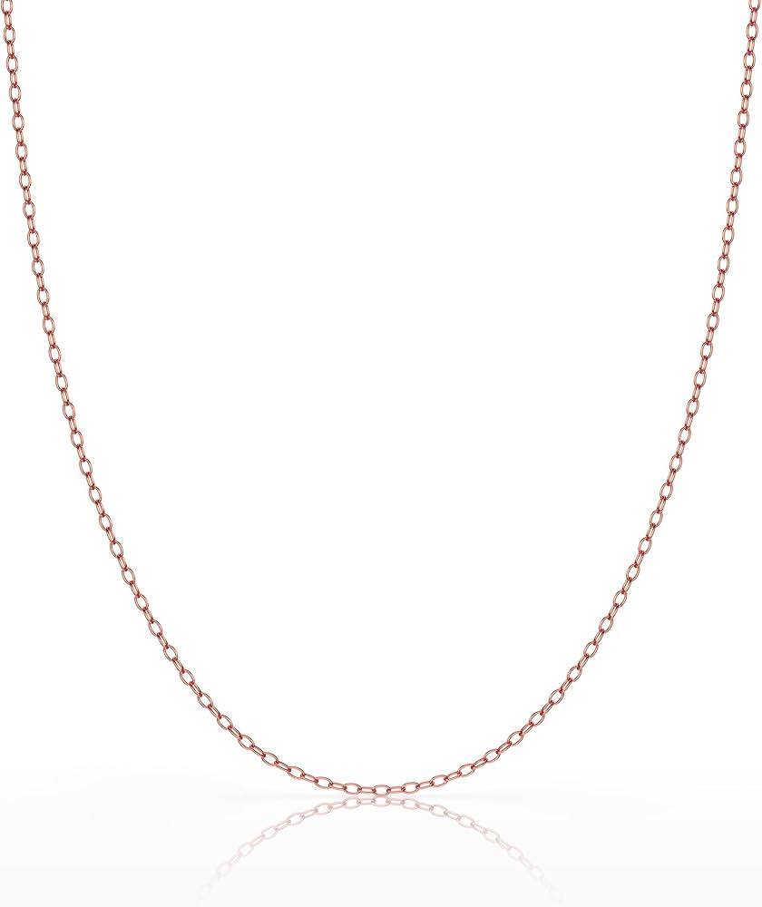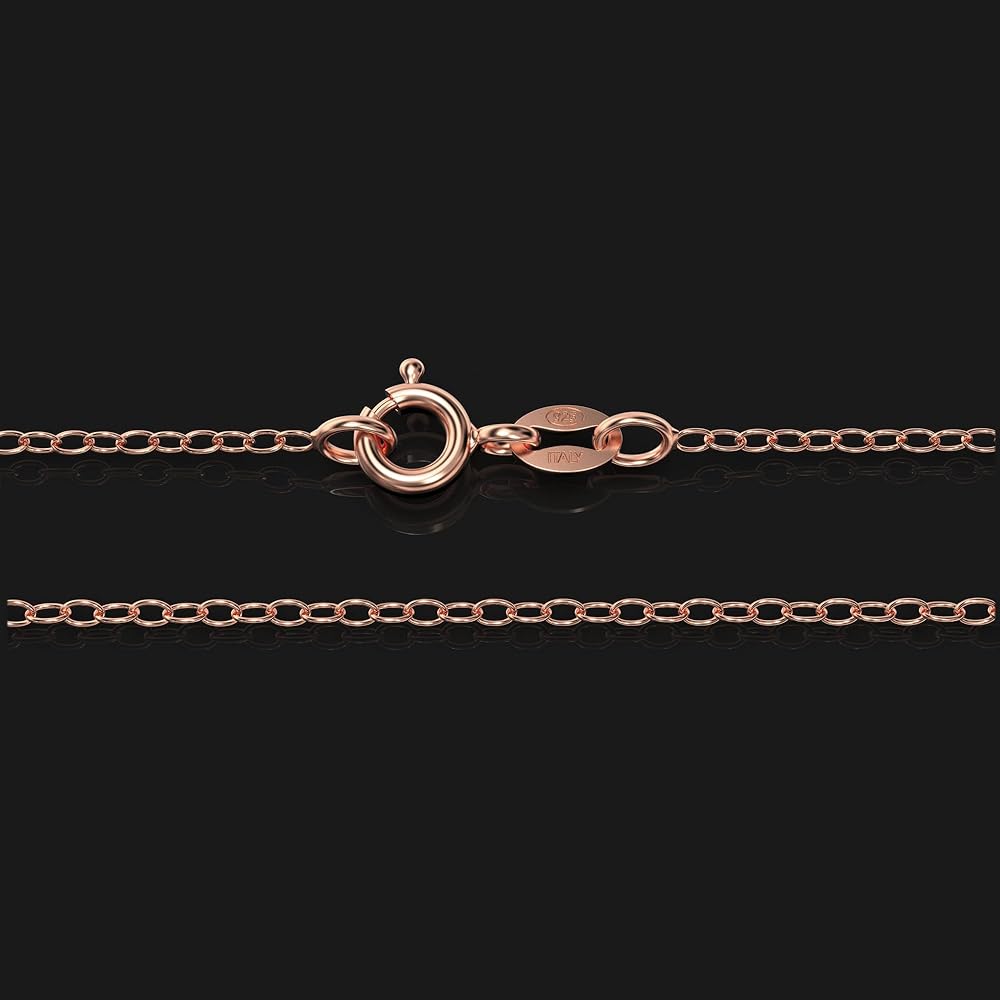 This classic cable chain necklace is very thin and lightweight (approximately 1.2mm thick), and is the perfect complement to your lightweight pendants. It is a high quality chain that is made in Italy with the finest standards of craftsmanship using solid .925 genuine sterling silver with a rose gold-tone overlay. Don't be fooled by others selling cheap knock-offs, these chains are the real thing - solid 925 sterling silver, made in Italy. Each chain is stamped 925 and ITALY for authenticity, and is secured with a durable spring-ring clasp. Our prices are incredibly low because our chains come direct from the Italian manufacturer! Available in a wide variety of sizes from 14" - 36". Select your desired length from the drop down list.