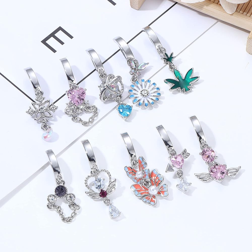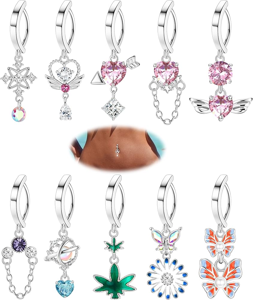 💃[حلقات بطن لطيفة]: يتضمن طلب واحد 10 قطع من حلقات زر البطن المتدلية: 4 قطع حلقات زر بطن وردية متدلية، حلقات بطن متدلية على شكل فراشة، حلقة زر بطن من الأعشاب البحرية، إلخ. حلقات بطن أساسية بسيطة مع تصميم إغلاق مفصلي متدلي جديد، لا تخرج أبدًا من الطراز، اختيار رائع للمجوهرات المثقوبة للبطن.
