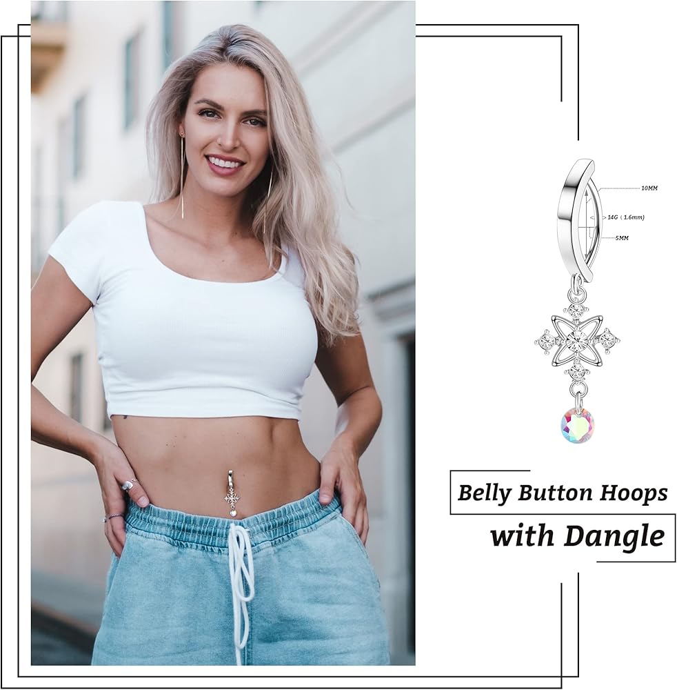 🎁[هدية مثالية]: حلقات زر البطن المتدلية الجميلة والعصرية للنساء مناسبة لمعظم المناسبات، هدية رائعة لأصدقائك للاستمتاع بعطلة الصيف الحارة على الشاطئ أو هدية في بعض المهرجانات.