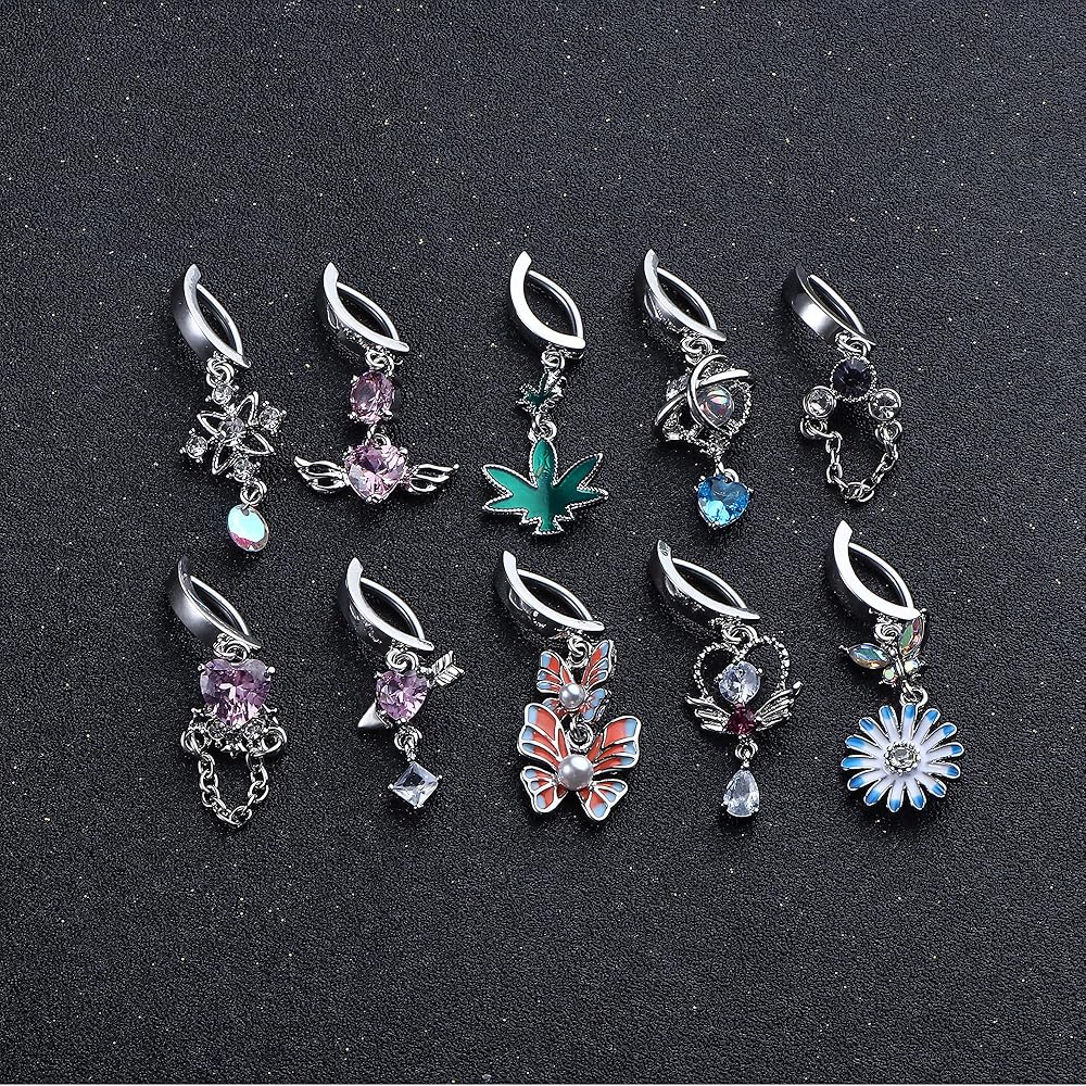 💎[القياس والحجم]: قياس حلقات زر البطن الفرس: 14 جم = 1.6 مم، مقاس القطر الداخلي: 5 × 10 مم، صغير ورائع مع متدلية بطول 20-35 مم، يتوافق مع إكسسوارات الألوان المختلفة، ساحر بما يكفي لجذب المزيد من الاهتمام.