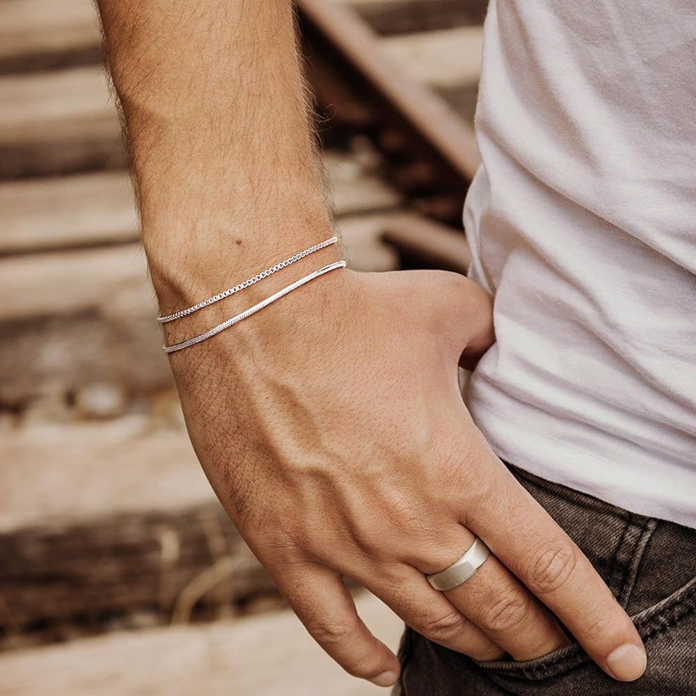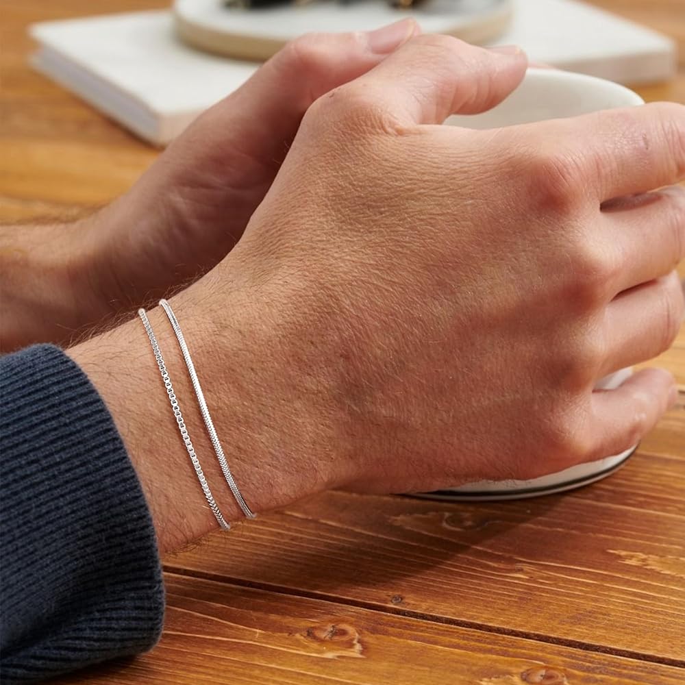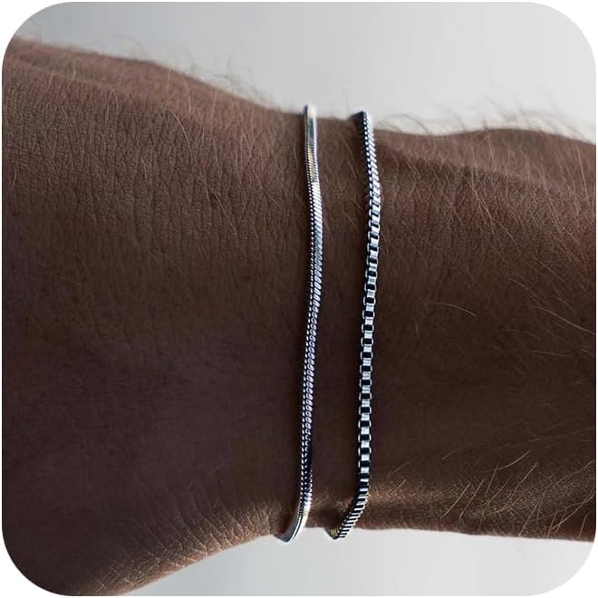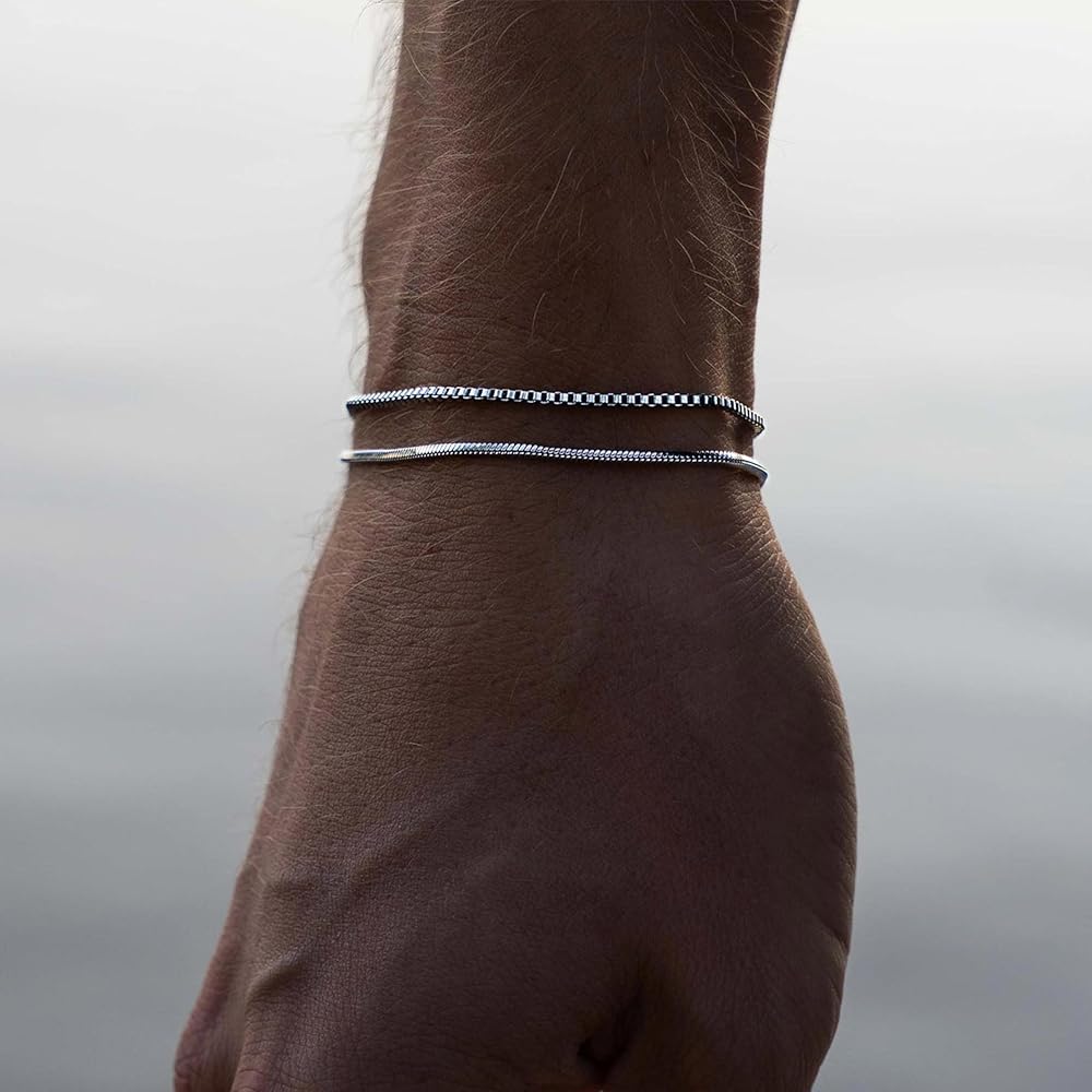 CHESKY الطبقات سوار الفضة للرجال الأولاد، 925 الفضة الاسترليني الرجال سوار لذيذ الرجال سوار مجموعة 2mm ثعبان مربع سلسلة ربط Braclets 6.5-9 بوصة الفضة والمجوهرات هدية للرجال الأولاد