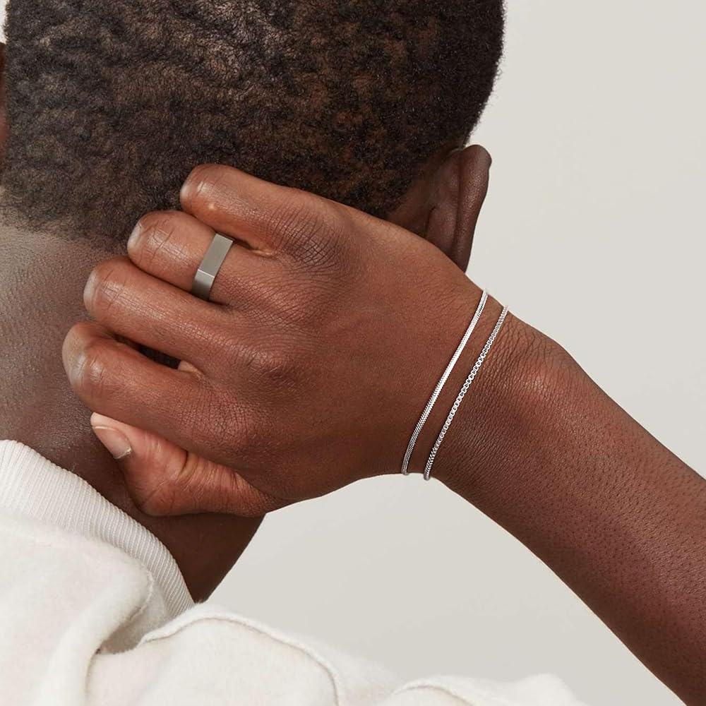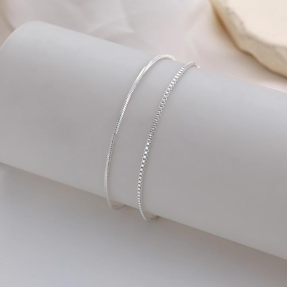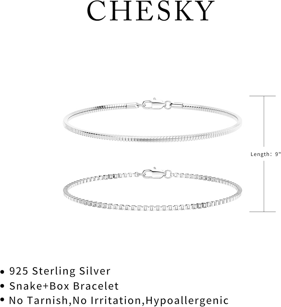 CHESKY الطبقات سوار الفضة للرجال الأولاد، 925 الفضة الاسترليني الرجال سوار لذيذ الرجال سوار مجموعة 2mm ثعبان مربع سلسلة ربط Braclets 6.5-9 بوصة الفضة والمجوهرات هدية للرجال الأولاد