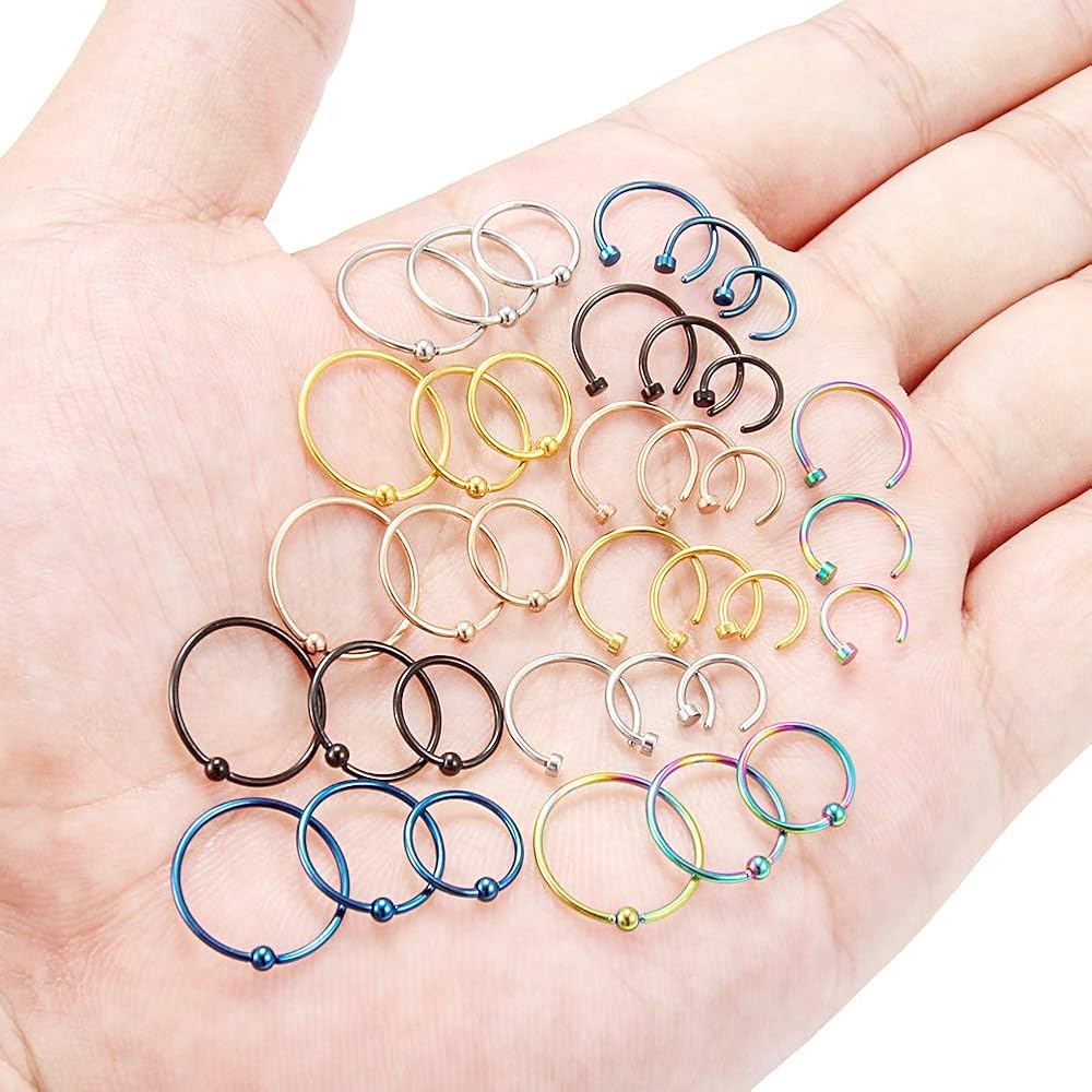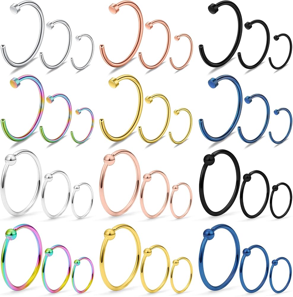 • PERFECT SET--One Order Including 36Pcs Nose Hoop Rings; Reasonable Price For Body Jewelry, Deserve To Purchase. Packs Each Jewelry with a Velvet Gift Pouch. Good Ideal Gift To Yourself Or Lover.