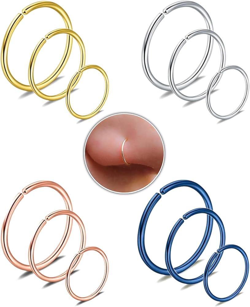 12 قطعة 20 غرام، اقراط وهمية لغضروف الانف، اقراط انف وحاجز الانف، اقراط انف مضادة للحساسية من الستيل الجراحي 316l، اقراط انف صغيرة ورفيعة، مجوهرات ثقب الانف مقاس 6 ملم 8 ملم 10 ملم للنساء