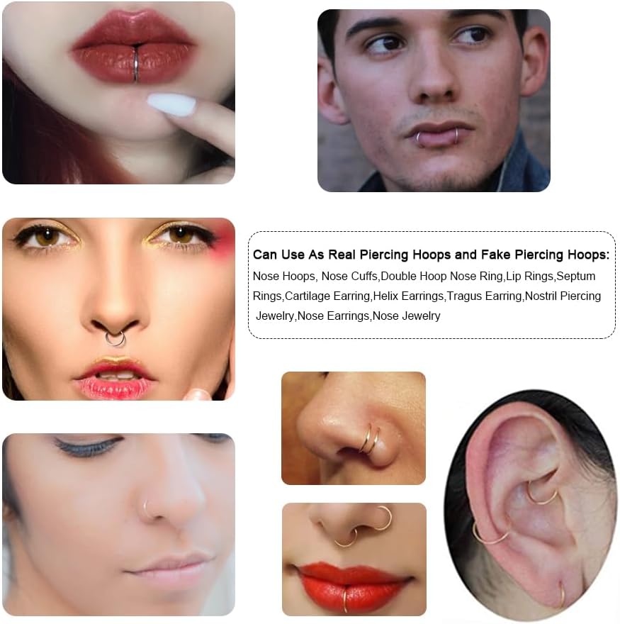 • [استخدامات متعددة] - يمكن استخدامها كأقراط ثقب حقيقية أو أقراط ثقب مزيفة، أقراط للأنف، أقراط للأنف، حلقات أنف، حلقة أنف حلقية مزدوجة، حلقات شفاه، مجوهرات ثقب الشفاه، حلقات شفاه مزيفة، أقراط حاجز الأنف، أقراط غضروف، مجوهرات ثقب حلزونية، أقراط أنف مزيفة، مجوهرات ثقب الأنف، حلقات أنف، أقراط أنف، أقراط حلقية لزنمة الأذن، مجوهرات ثقب الأنف، مجوهرات الأنف.