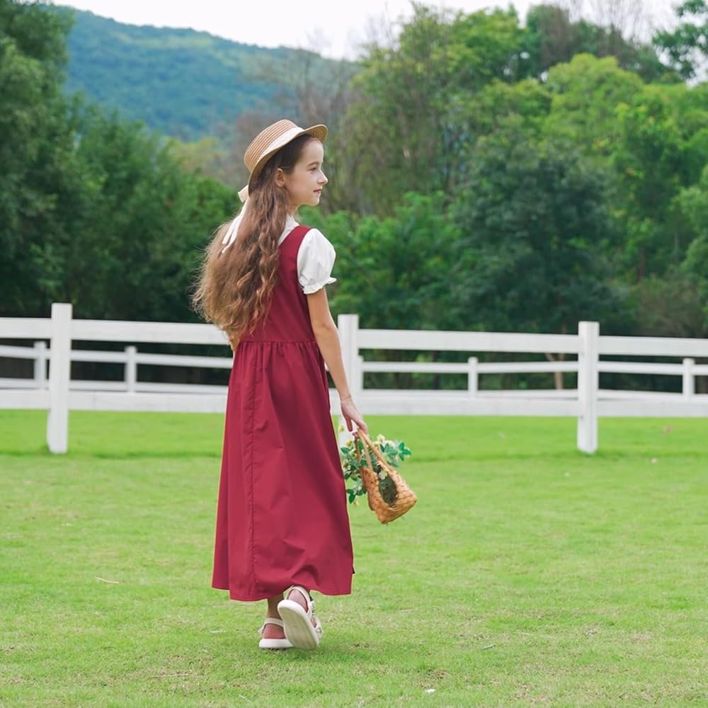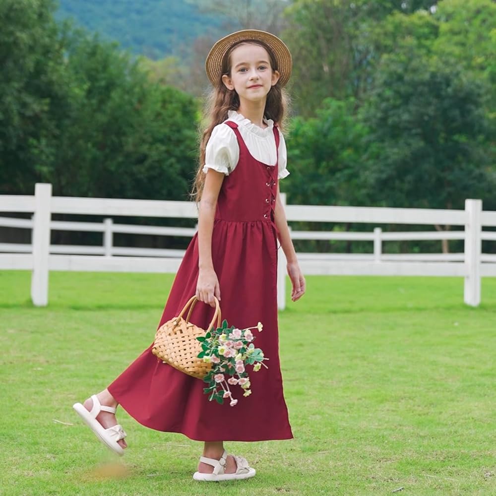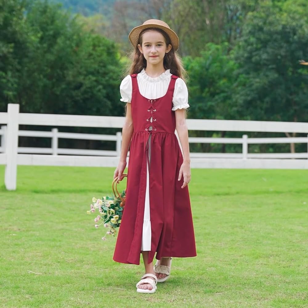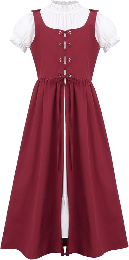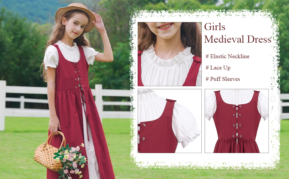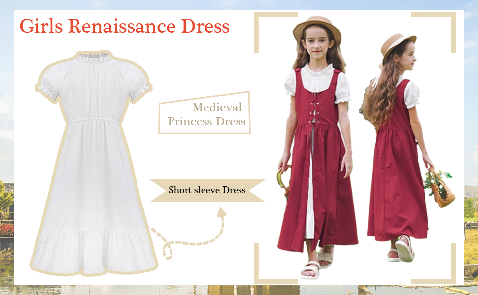 - قطعتان: زي عصر النهضة للفتيات هذا يحتوي على قطعتين، فستان بأكمام منتفخة وفستان طويل ذو فتحة صدرية