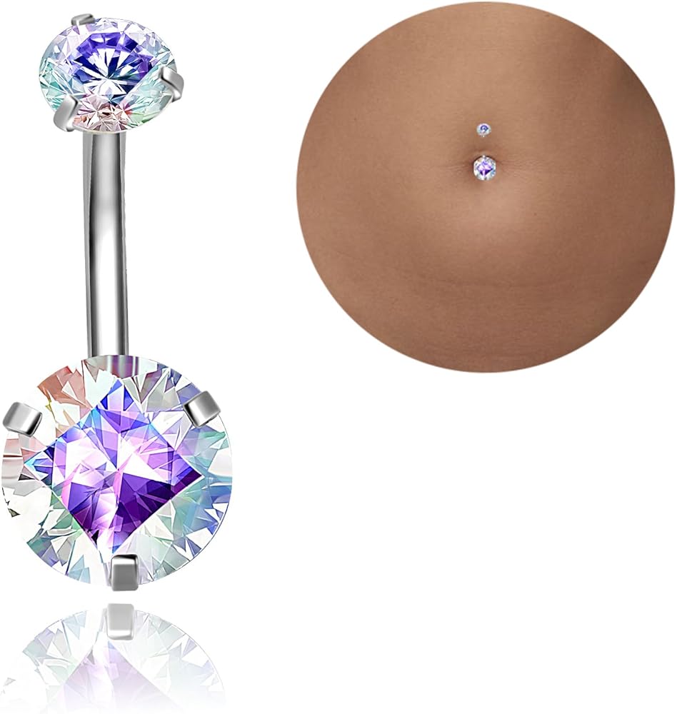 - 1.6 مم = 14 جرام، الكرة العلوية 5 مم، الكرة السفلية 8 مم، الطول: 9.5 مم، حجم حلقة البطن الشائعة، سهل الارتداء.