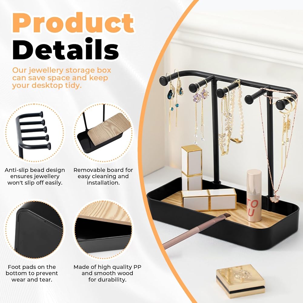 【تصميم مضاد للانزلاق وقابل للفصل】 يضمن الخرز المضاد للانزلاق الموجود على الخطافات بقاء مجوهراتك في مكانها، مما يمنعها من التشابك أو التلف. اللوحة الخشبية القابلة للفصل مريحة للتنظيف والتركيب.