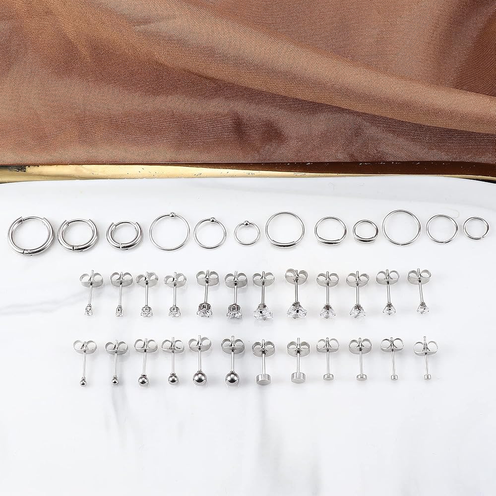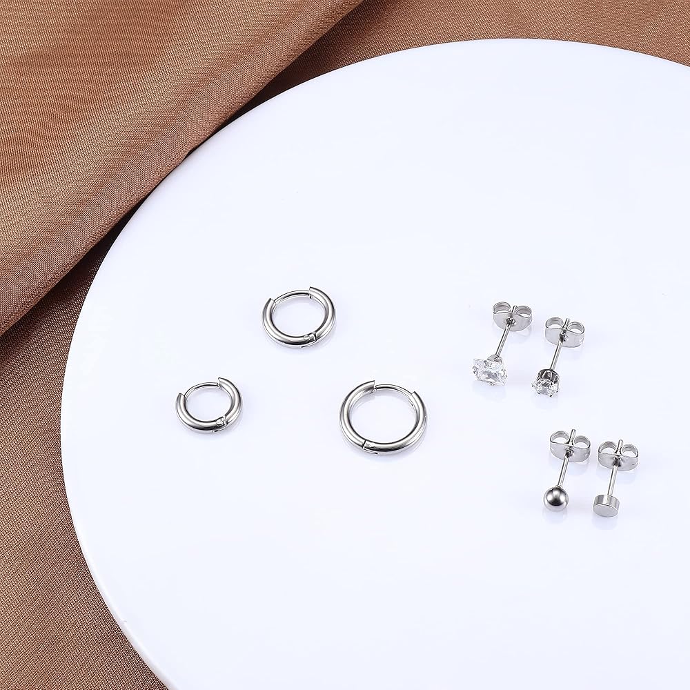 💃[مجموعة أقراط صغيرة]: يتضمن طلب واحد 3 أزواج من الأقراط الصغيرة ذات الأزرار؛ 3 أزواج من الأقراط المرصعة بشكل مربع، و3 أزواج من الأقراط ذات الأزرار الكروية، و3 أزواج من الأقراط ذات الأزرار المنقطة، و12 قطعة من الأقراط الحلقية الصغيرة.