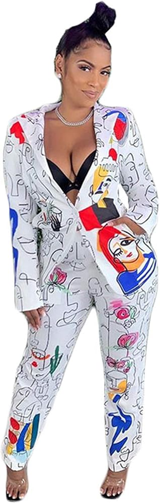 المرأة مثير 2 قطعة الكتابة على الجدران طباعة السترة البدلة السراويل مجموعة ملهى ليلي رياضية الزي مجموعة