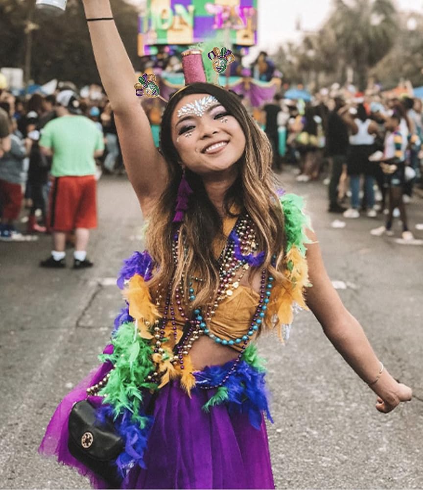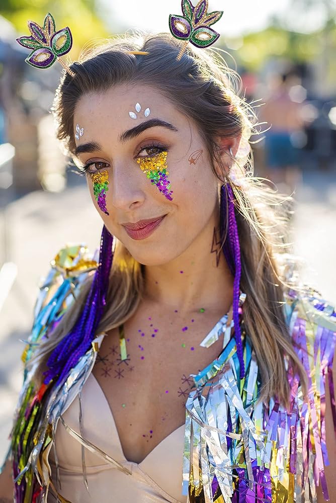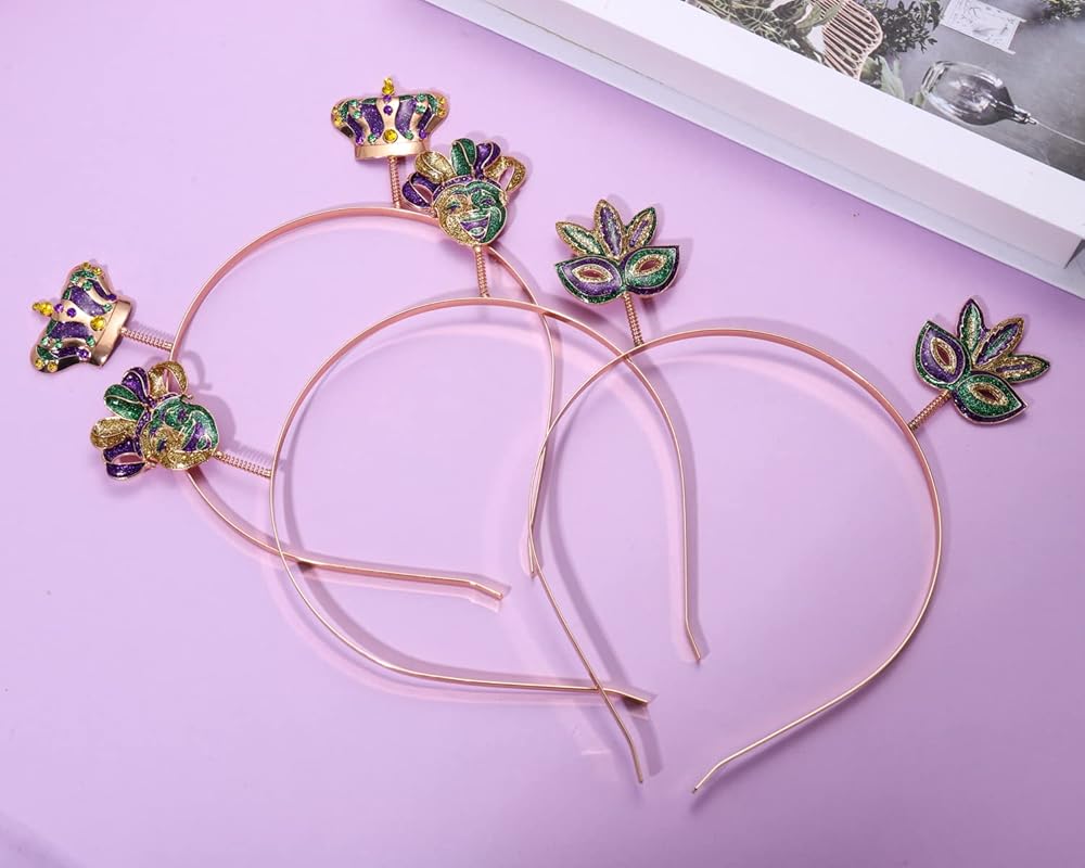 عصابة رأس ماردي جراس: احتفل بماردي جراس مع عصابة رأس الكرنفال هذه بما في ذلك القناع وتاج الملك والمهرج. طوق شعر العطلات الخاص بنا بألوان الكرنفال الكلاسيكية - يمثل اللون الأرجواني العدالة، والأخضر يمثل الإيمان، والذهبي يمثل القوة، سواء كنت تقضي اليوم في حفلة حديقة أو تشاهد العوامات الرائعة في موكب، فإن عصابة الشعر الخاصة بك التي تحمل طابع ماردي جراس تناسب بشكل خيالي. ويتيح للجمهور معرفة أنك مستعد للاستمتاع ببعض المرح