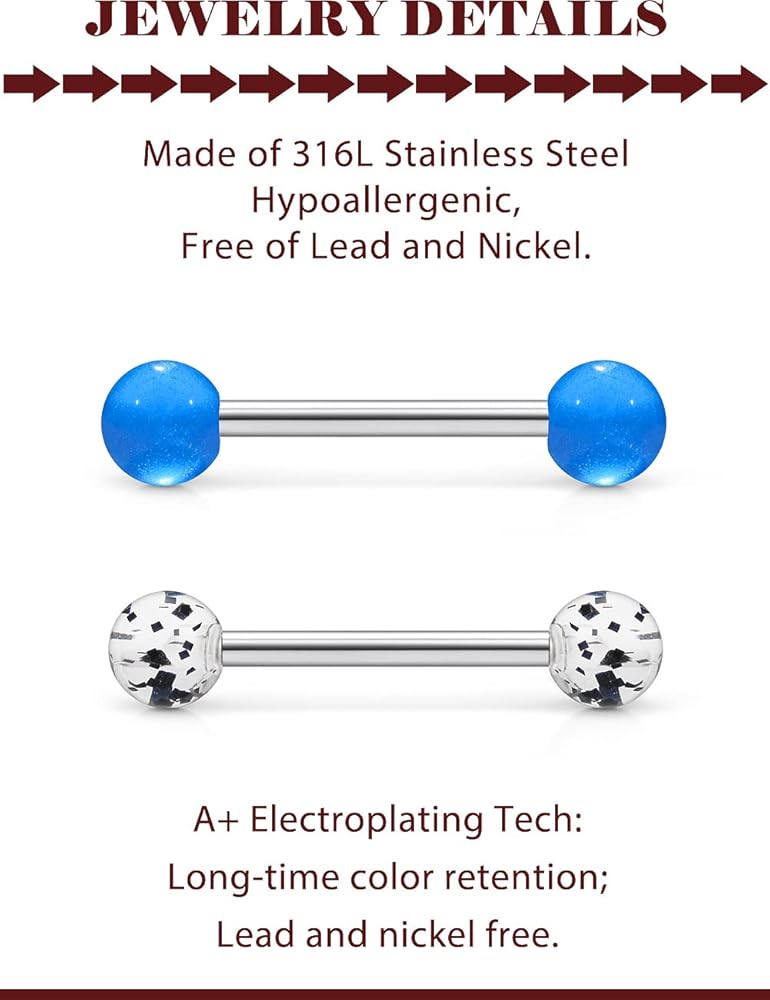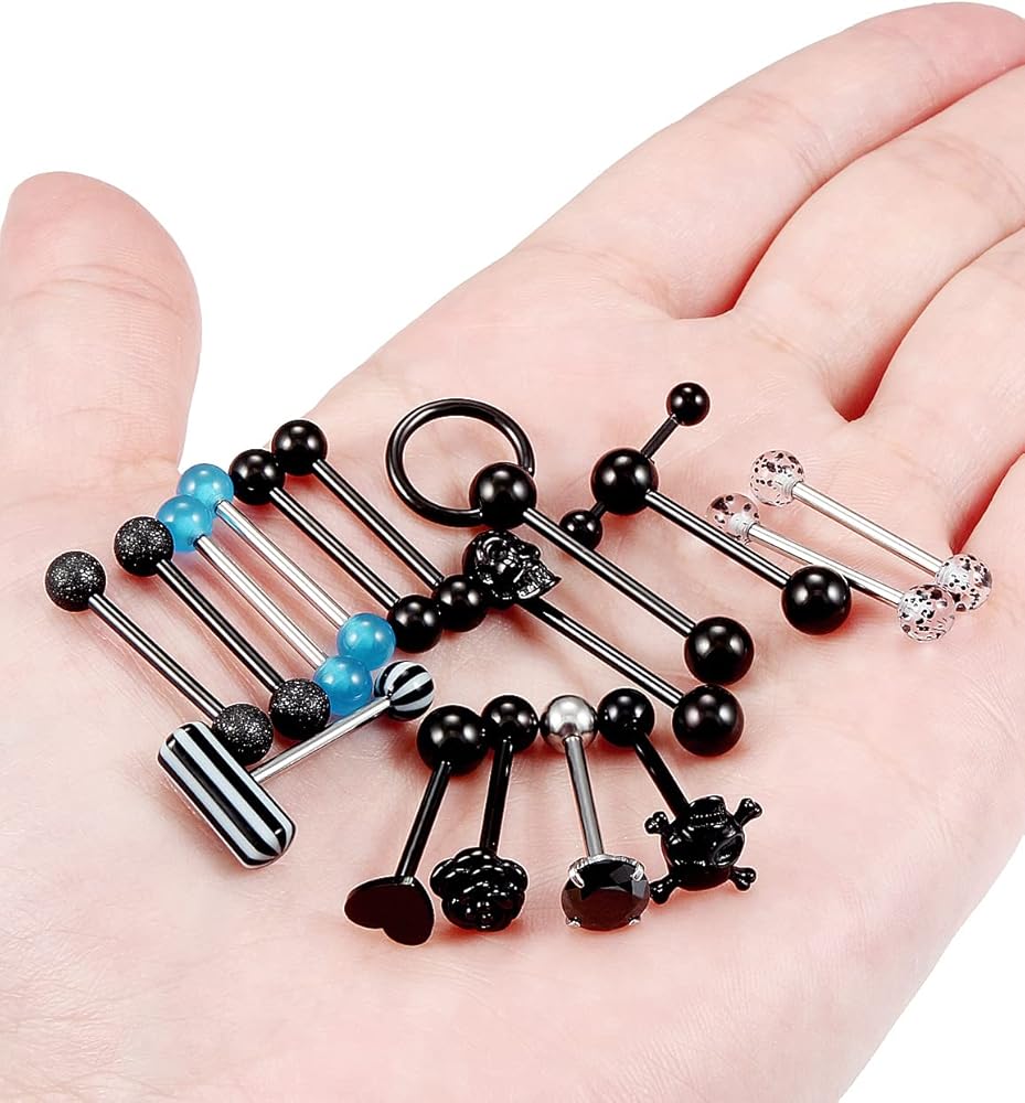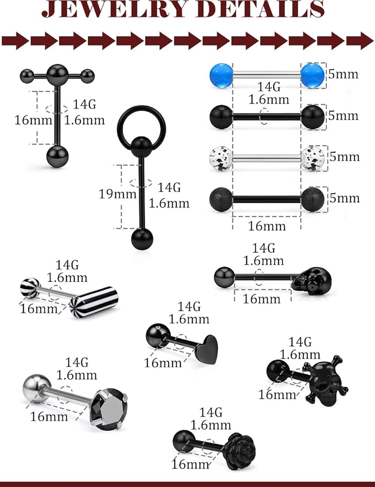 • 14 Gauge Tongue Rings Nipple Rings :14G(1.6MM),Barbell Bar Length:5/8 inch 16 Millimeter,Balls Top Size:5-8,Black Tone Tongue Rings