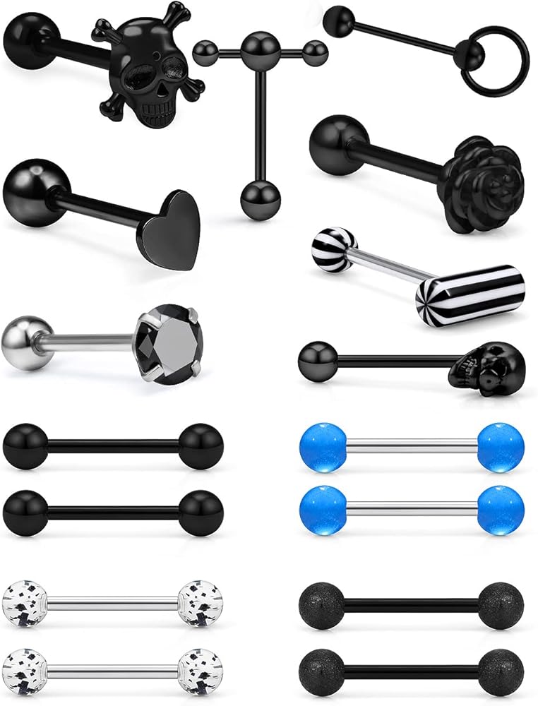 • 16Pcs Tongue Rings Tongue Piercing Jewelry In a velvet bag,