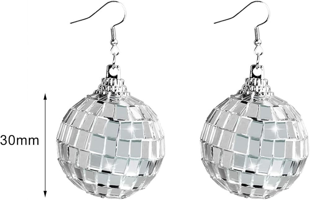 حجم وكمية أقراط كرة الديسكو: تتضمن العبوة زوجًا واحدًا من أقراط كرة الديسكو، قطر كرة الديسكو حوالي 3 سم/ 1.18 بوصة، أقراط الكرة المرآة كافية لجذب الانتباه، ولكنها لن تطغى على وجهك.