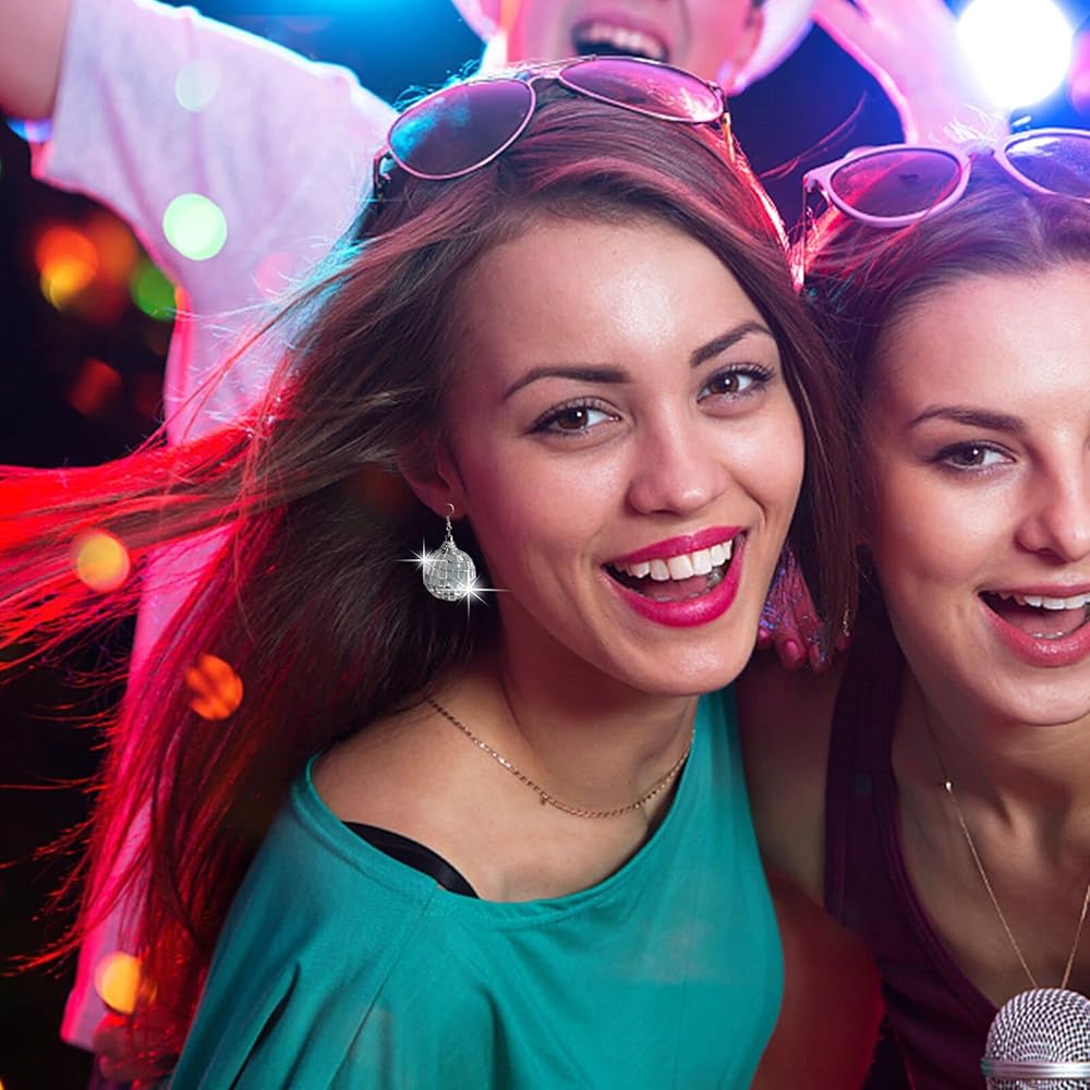 أقراط كرة ديسكو عالية الجودة: أقراط ديسكو الفضية للنساء مصنوعة من مادة سبائك عالية الجودة، ليس من السهل تشويهها، صغيرة الحجم وخفيفة الوزن، مما يوفر لك تجربة ارتداء مريحة.