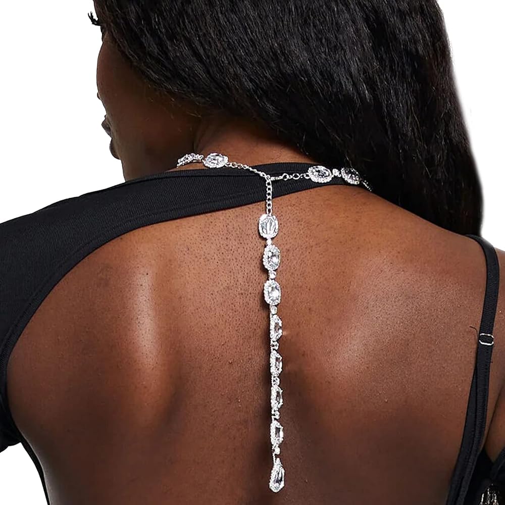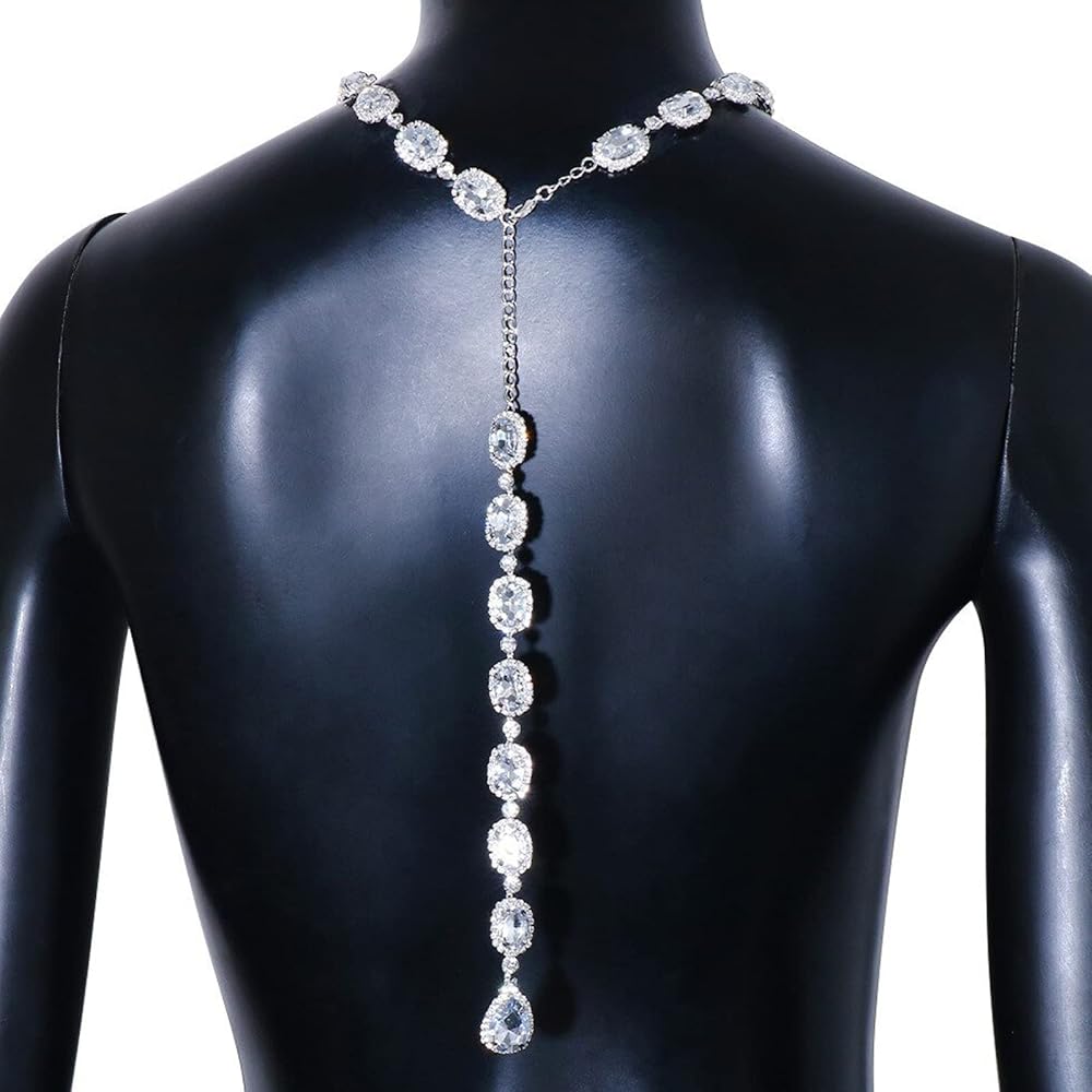 - سلاسل جسم فاخرة من الكريستال للزفاف سهلة الارتداء، قلادة خلفية سلسلة مجوهرات متوفرة باللون الفضي والذهبي، سهلة التنسيق مع الملابس المختلفة.
