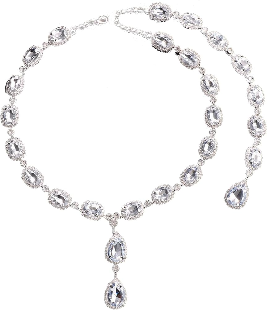 - سلسلة مجوهرات ذات شرابة كريستالية طويلة الرقبة قابلة للتعديل. مقاس واحد يناسب معظم الأشخاص. إنه اختيار جيد لعطلة الزفاف والارتداء اليومي.