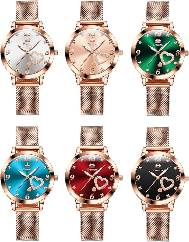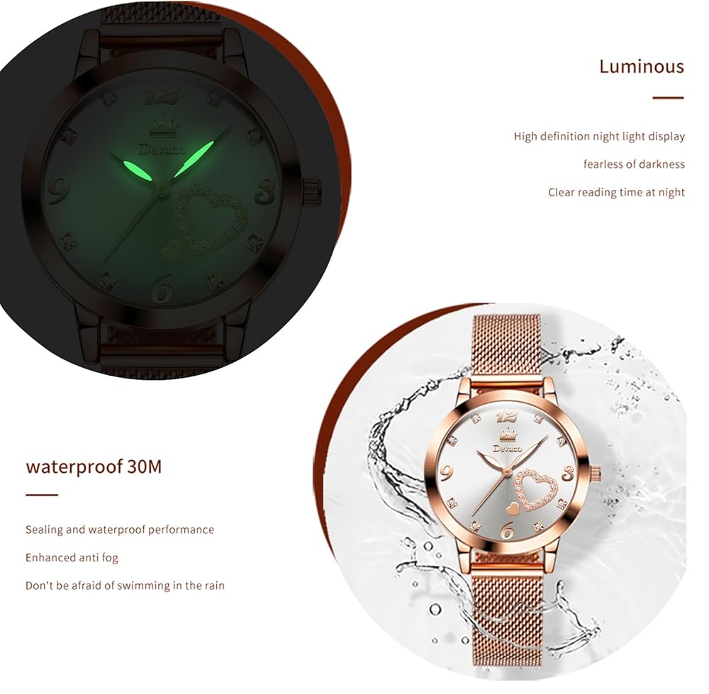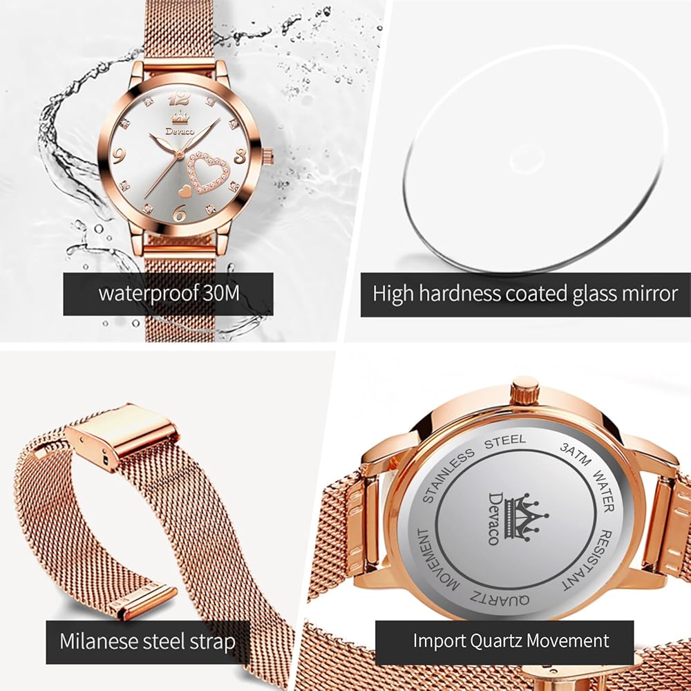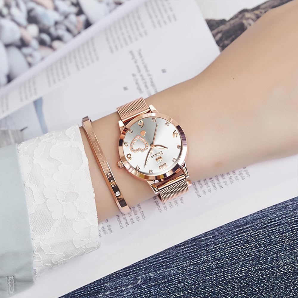 💗 【هدية مثالية للنساء】 تعتبر مجموعة الساعات النسائية باللون الذهبي الوردي مع أساور العلامة التجارية الهدية المثالية لكل امرأة رائعة ومناسبات لا تُنسى مثل عيد الحب أو عيد الميلاد أو عيد الميلاد. هذه الساعة مثالية للارتداء اليومي، وتضيف رومانسية غير عادية إلى كل يوم.