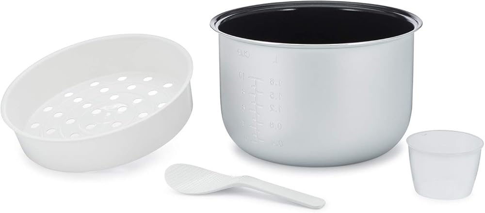 • الملحقات المتضمنة: بالإضافة إلى الوعاء المطلي بالسيراميك غير اللاصق، يأتي Zest Plus أيضًا مع صينية بخار آمنة للغسل في غسالة الأطباق، وكوب قياس الأرز وملعقة الأرز.