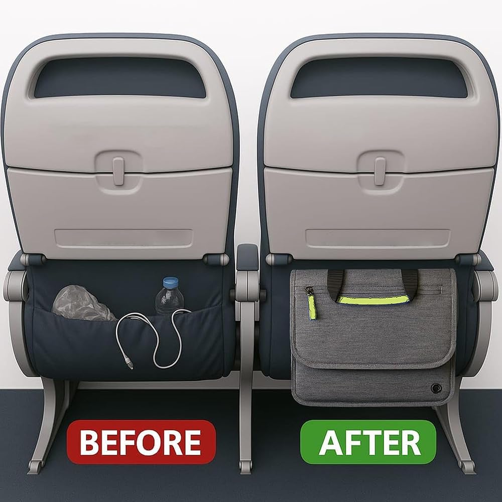 فعالة من حيث التصميم، يتيح المظهر الجانبي النحيف للغاية الذي يبلغ 8 بوصات لحقيبة الركاب غير المعبأة للآخرين المرور بحرية في الممر أو بين المقاعد دون الاصطدام. ينزلق حزام مرن فوق مقبض الحقيبة الدوارة مما يجعل التوصيلات المتعددة والمغادرة السريعة أسهل بكثير. تسمح لك ميزة الإدارة بشحن الأجهزة أثناء وجودك في جيب الحقيبة، ومع التصميم المنظم جيدًا، ليست هناك حاجة لعرقلة حركة المرور عبر الأمان ويضمن أنك لن تترك أي شيء خلفك.