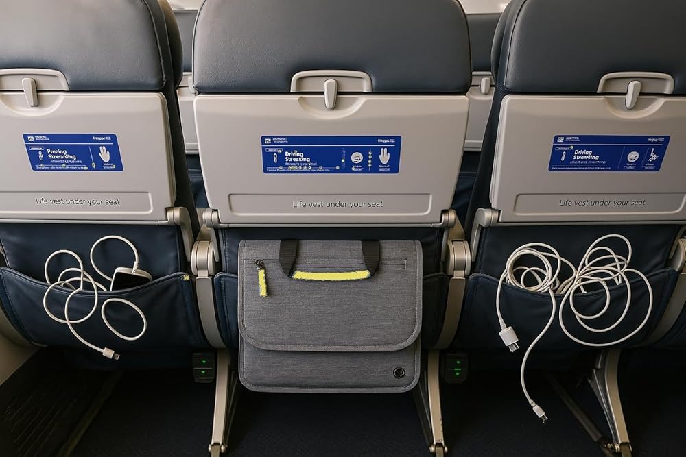 يتضمن الجزء الداخلي المعتمد من COMMUTER 6 جيوب مفتوحة لتخزين جهاز iPad والهاتف ومناديل التنظيف وغيرها من الضروريات. توفر الحقيبة حلقتين لإدارة السلك، واحدة قصيرة لسماعات الأذن/أسلاك الشحن وواحدة أطول لسماعات الرأس المانعة للضوضاء أثناء النقل. جيب بسحاب على اللسان الخارجي يحافظ على وثائق السفر آمنة ويوفر مكانًا آمنًا للنظارات وسماعات الأذن الصغيرة وما إلى ذلك. يتم إدخال اللسان المقوى بقوة داخل جيب المقعد أمامك مما يوفر مساحة إضافية للساق تحته.