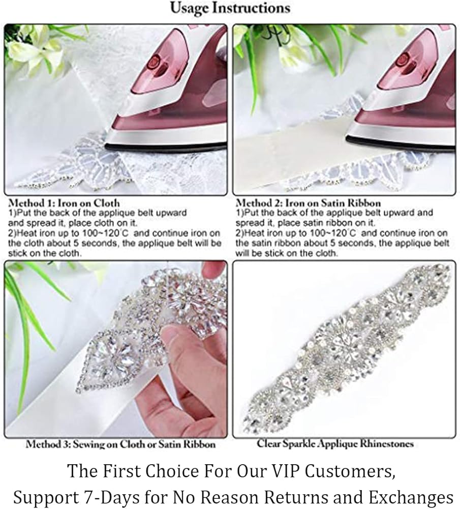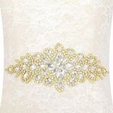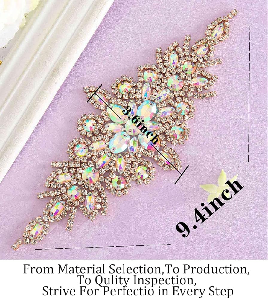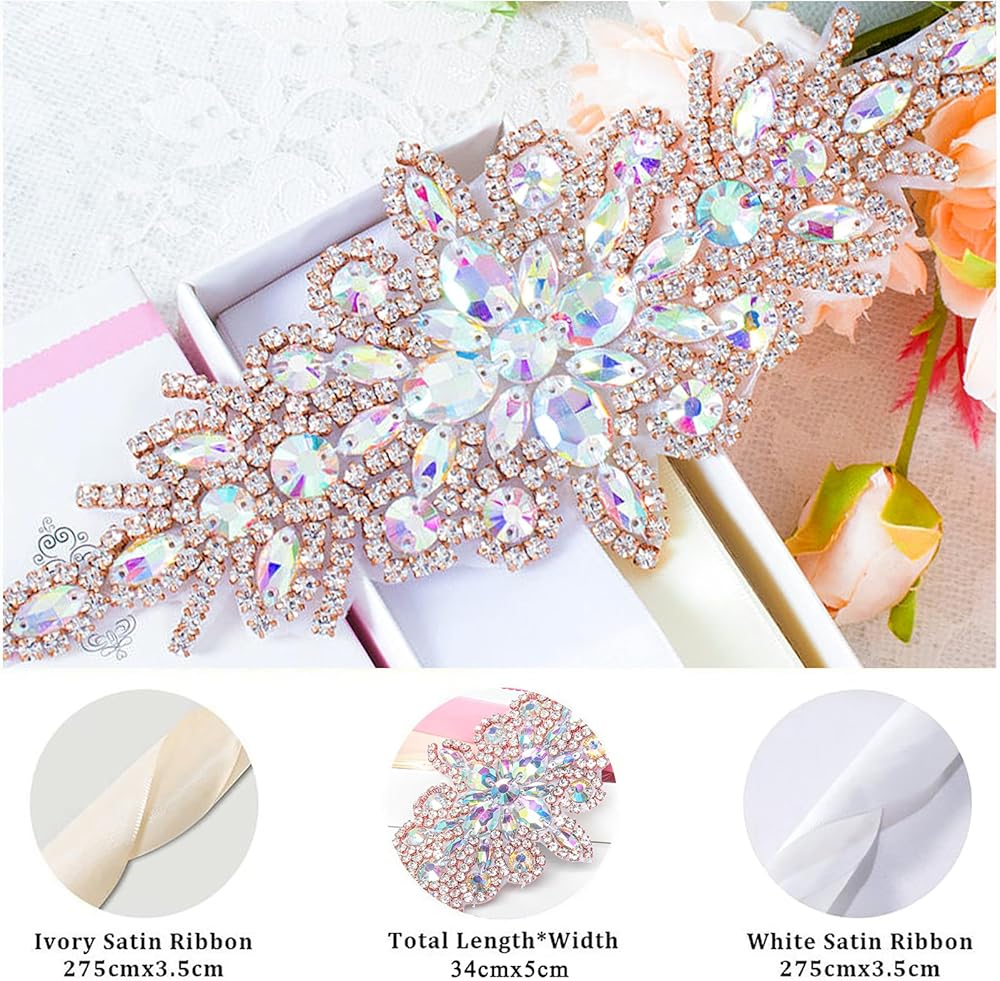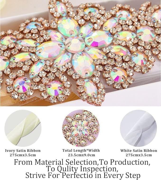 • √ حزام من حجر الراين: مقاس مزين بحجر الراين 9.8×3.6 سم، يأتي مع شريط أبيض وعاجي. رائع لتقديم إضافة لطيفة لأحزمة فساتين الزفاف أو أوشحة فستان وصيفة العروس من حجر الراين.