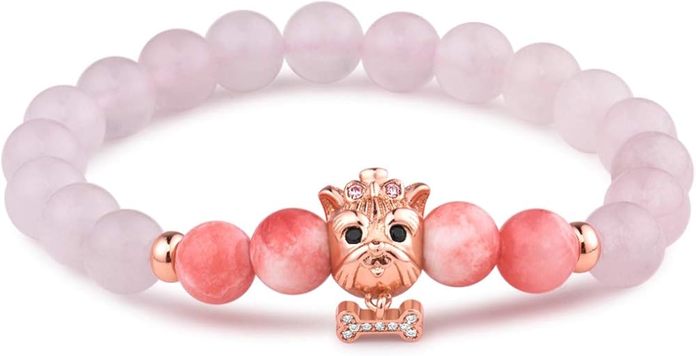 • ♡ Unique & Lovely: This anxiety gemstone bracelet is a natural purple chalcedony bracelet with the theme of Yorkshire Terrier. The cute puppy charm consists of white gold (rhodium) plating and cubic zirconia, perfectly embellished with 8mm lavender amethyst and lavender chalcedony beads.