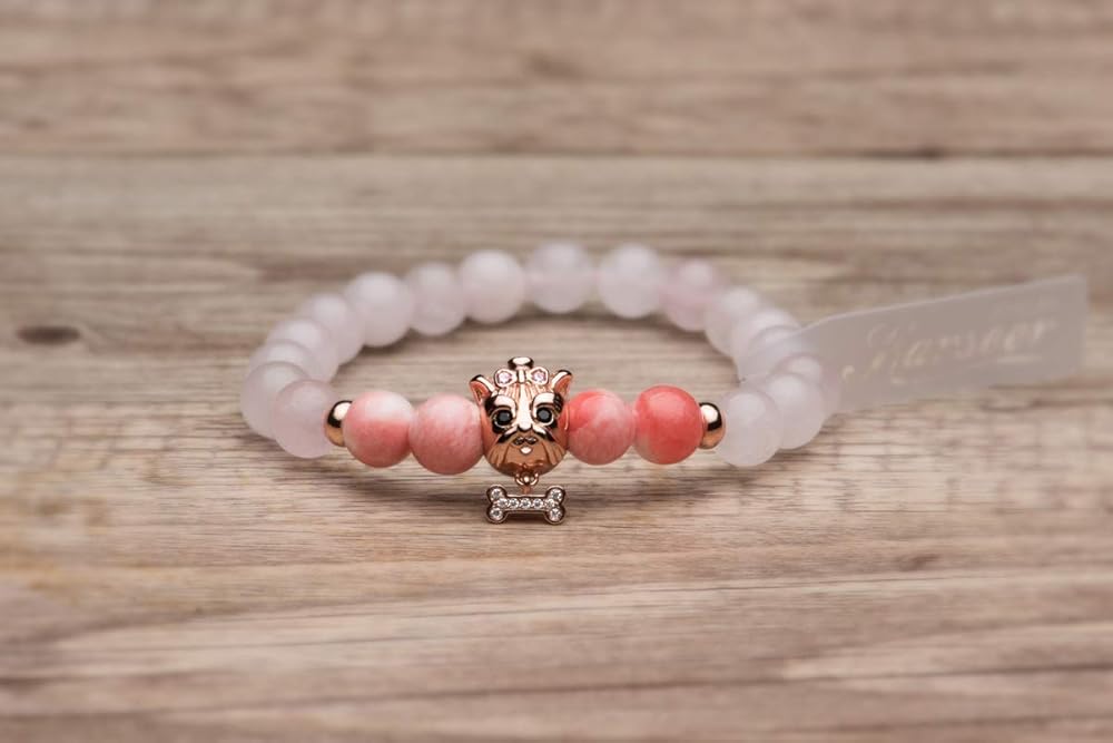 • ♡ Inspired by Yorkshire Terrier: The Yorkshire Terrier is beautiful, intelligent and confident, small and has the reputation of "moving gemstone". Rhodium-plated Dog Charm with chalcedony, giving you sacred strength, is the natural mascot bracelet.