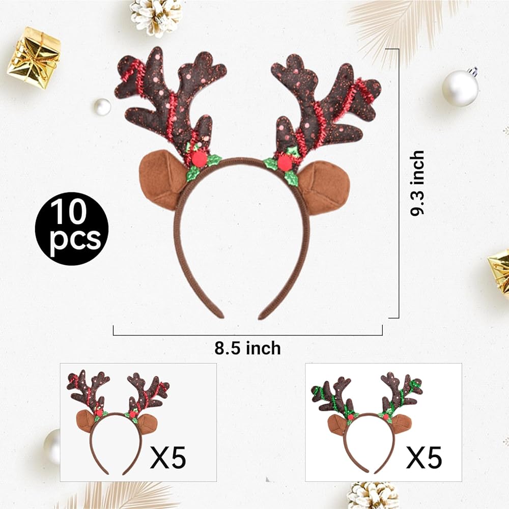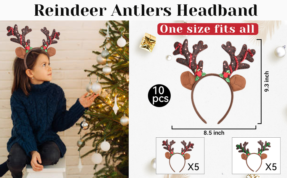 RIGHT SIZE - Each reindeer anlter hair band with dimensions of about 8.5 x 9.3 inches. These Christmas reindeer headbands are not only suitable for adults, children, super versatile, also fit pets heads, funny and interesting.