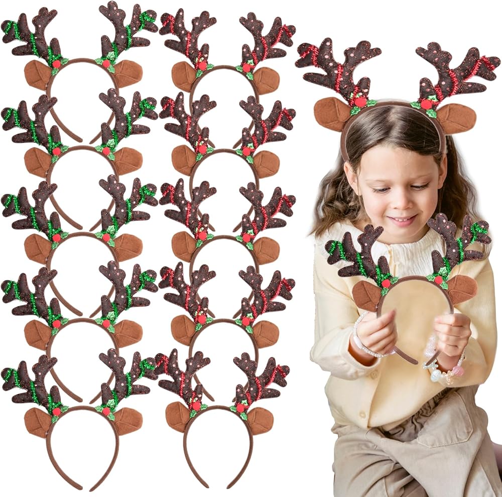 conehoy 10 قطع قرون الرنة عقال براون عيد الميلاد آذان الرنة مع بريق الترتر خوذة عصابات الشعر الغزلان للأطفال البالغين عيد الميلاد حزب تفضل تأثيري حلي اللوازم