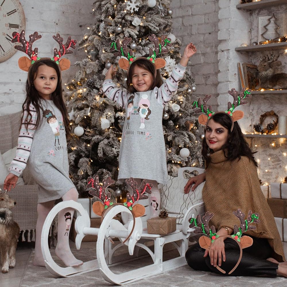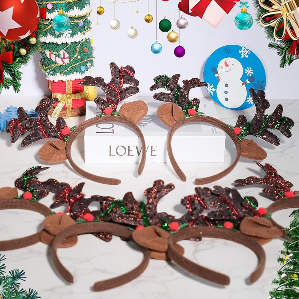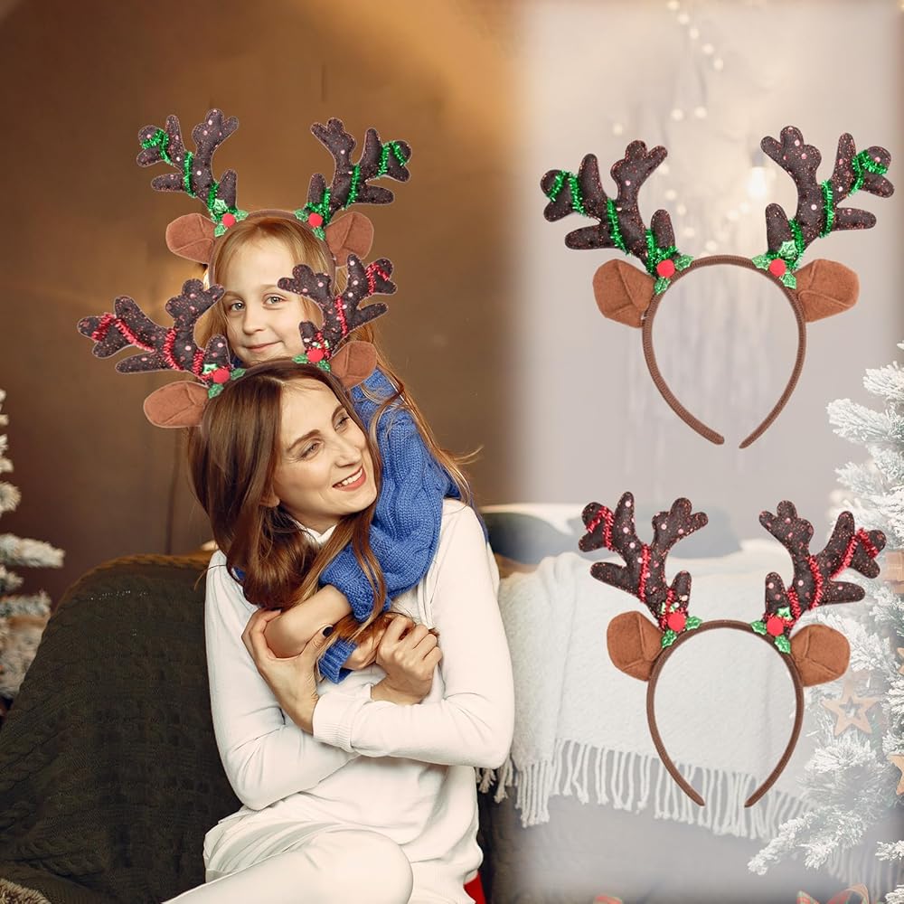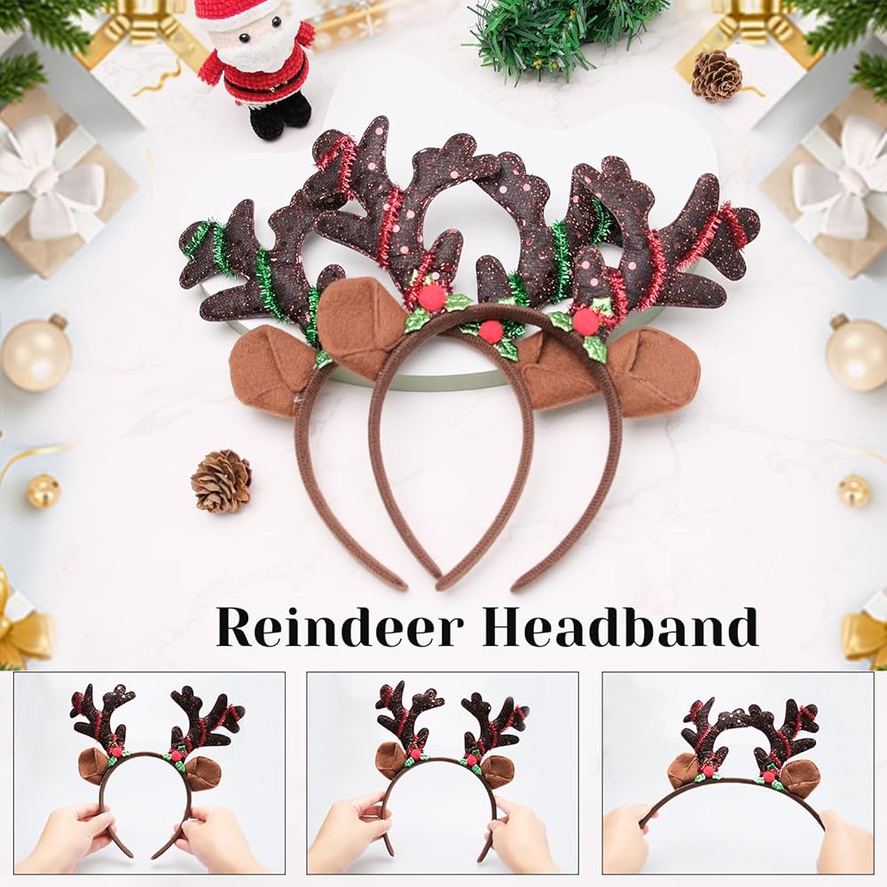 DAZZLING DESIGN - Our Brown antler headband featuring reindeer antler shape and berry decorations, the intricate detail and glittering sequins are designed to stand out in the crowd. Our antler headbands are must-have Christmas party supplies, and can serve as a memorable gift or party favors for your guests or beloved ones.
